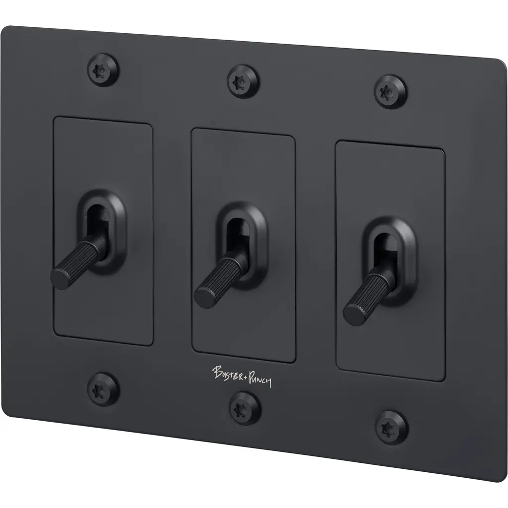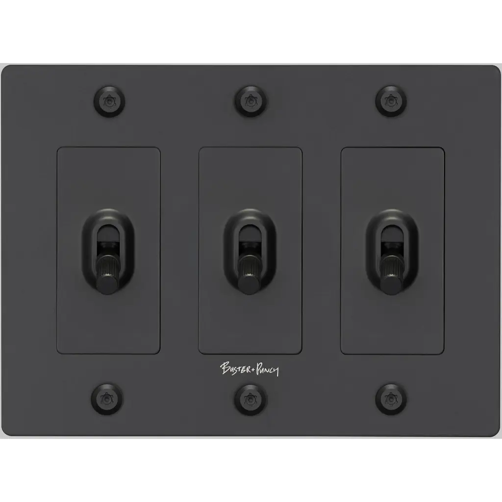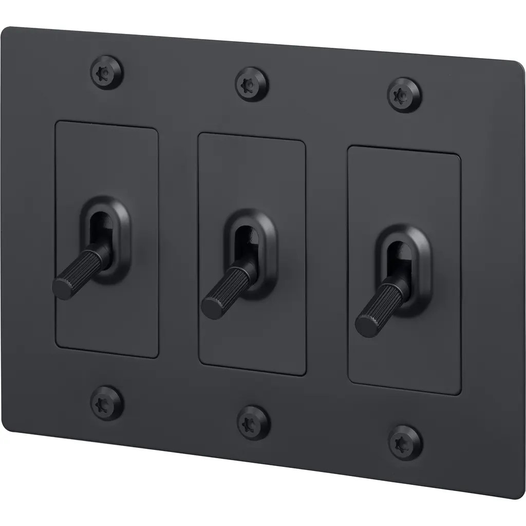 A 3G toggle switch finished in black. The toggle arm features our newest signature, linear knurl pattern and is made from solid black anodised metal.
