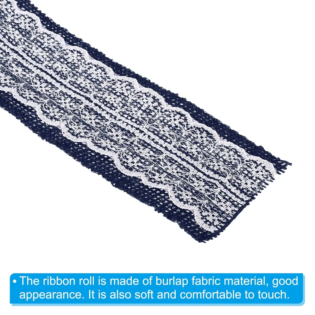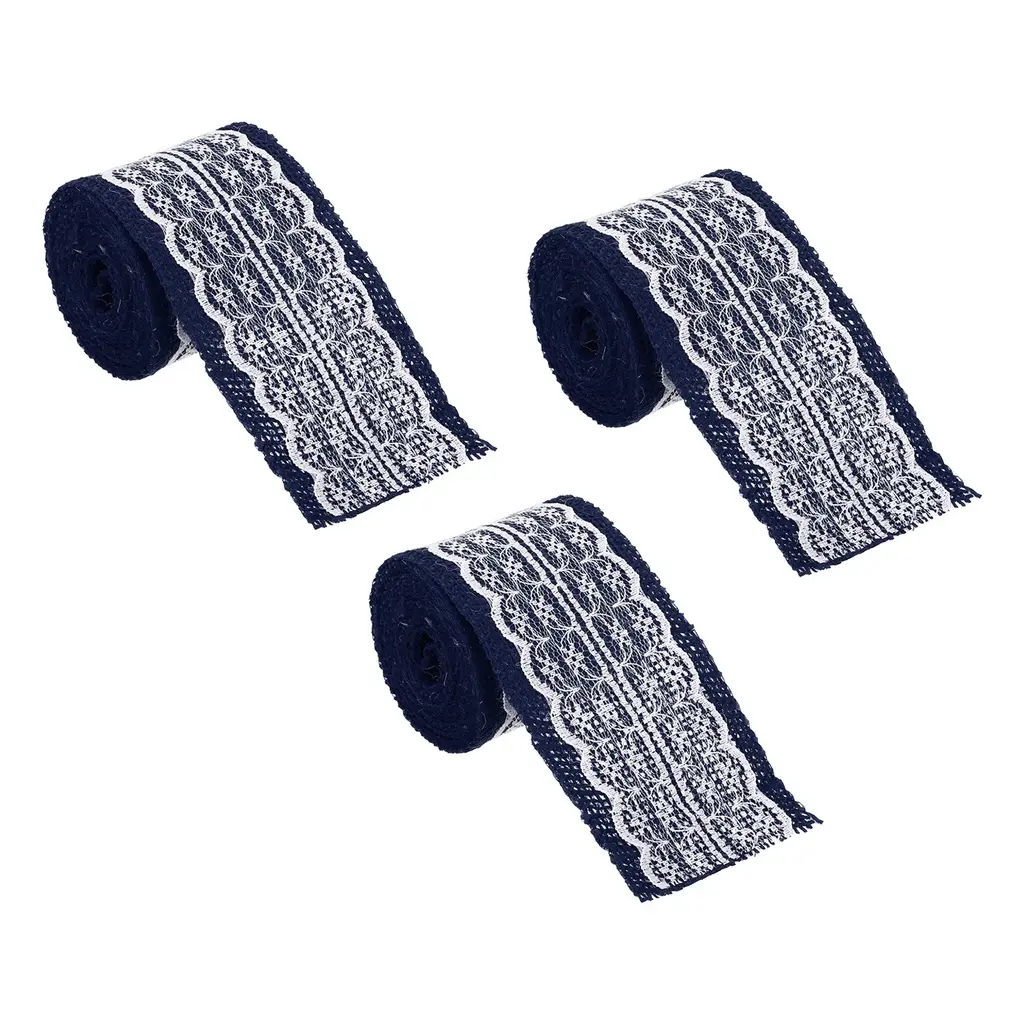 3Pc 2.4" Wide 2.2 Yards Burlap Ribbon White Lace Wrapping Crafts Roll - Navy Blue