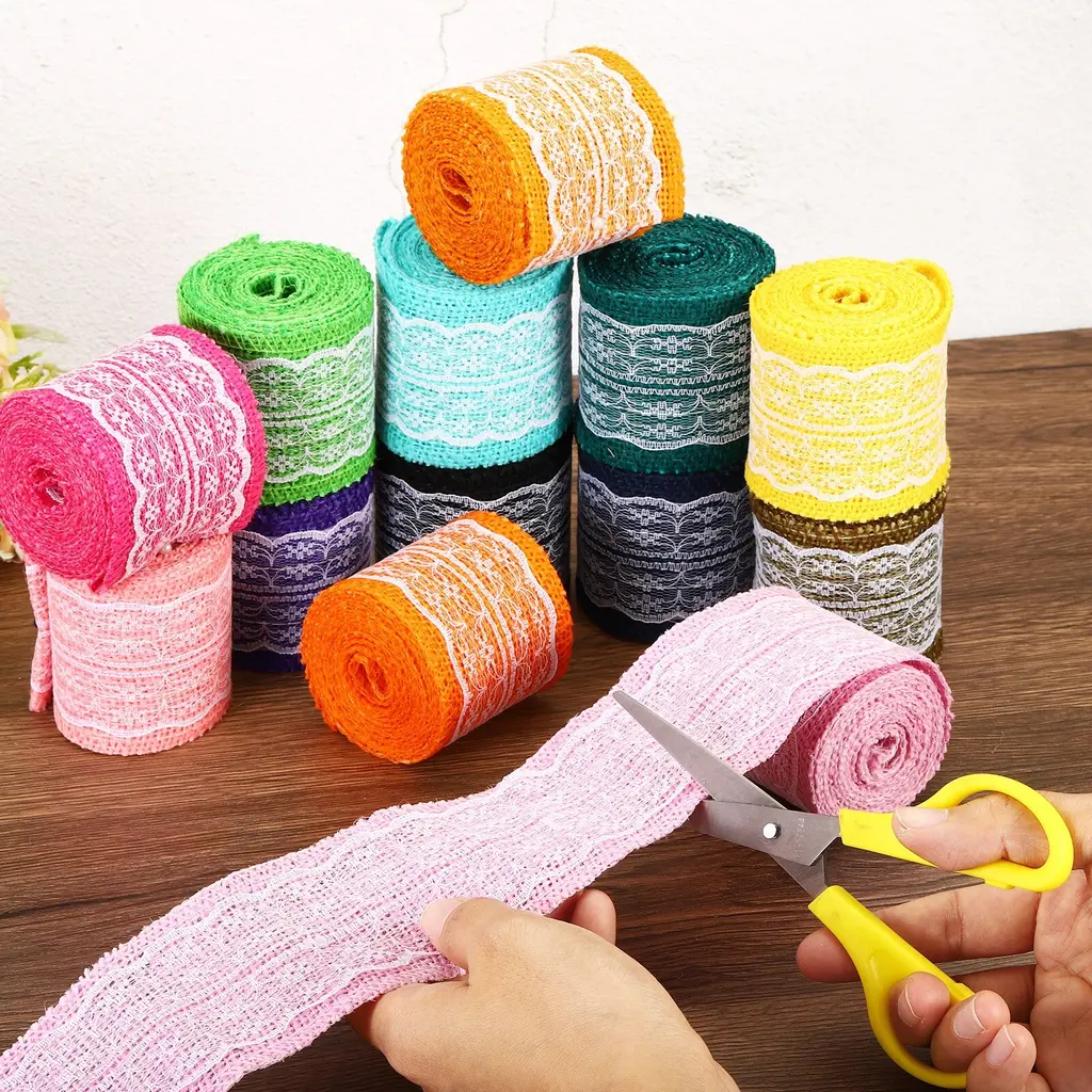 Add a touch of rustic elegance to your craft projects with this 3pc 2.4" Wide 2.2 Yards Burlap Ribbon White Lace Wrapping Crafts Roll. Made from high-quality burlap fabric, this ribbon roll is not only visually appealing but also soft and comfortable to the touch. It's perfect for adding a charming bow or wrapping items, making it versatile for various art crafts, wine bottle decoration, package decoration, flower arrangement, DIY cloth sewing, and more. The roll comes in a convenient size of 60mm x 2m / 2.4 Inch x 2.2 Yard and can be easily cut into any length or shape using scissors. With its compact roll shape, storage and transportation are a breeze. Enhance your creations with this beautiful burlap ribbon lace roll.Features: