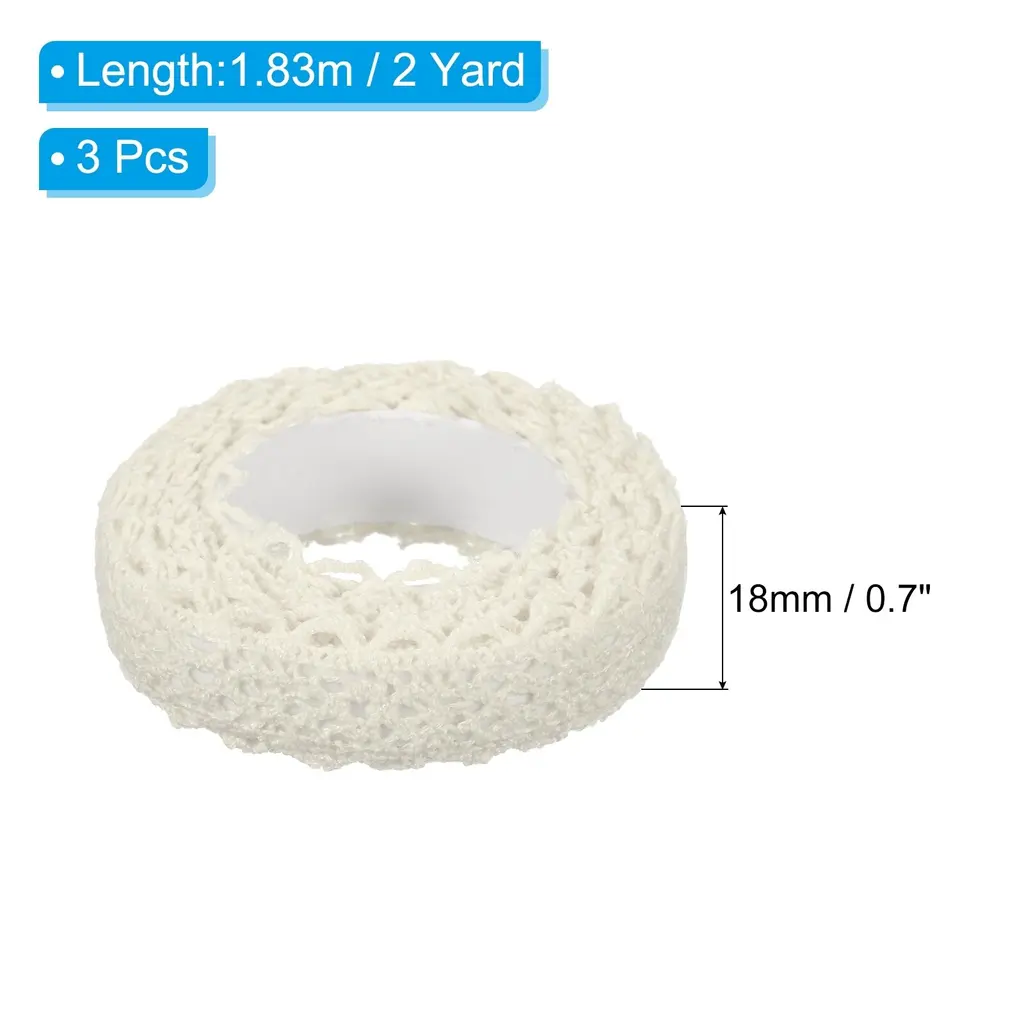 3Pcs 0.7" Wide 2 Yards Self-Adhesive Lace Tape Ribbon For Craft - Beige