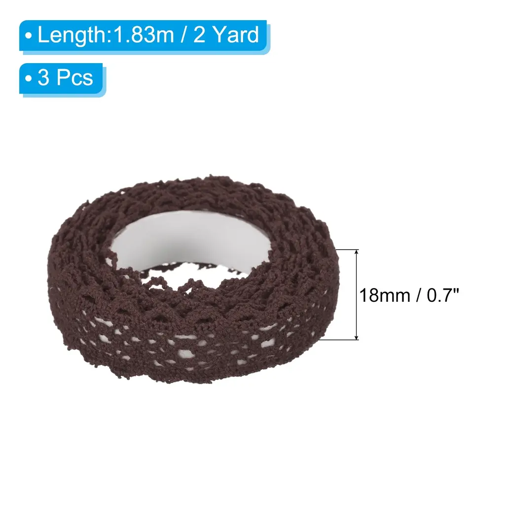 Elevate your crafts to a new level of elegance with our lace washi tape. Lace tapes are perfect for art journals, mixed media art, paper cutting, scrapbooking, diaries, books, interior designers, handmade cards, vision boards, lampshades, notebook covers, gift wrapping and tags, party decorations, photo albums, photo walls, school projects, and other DIY craft projects. These lace washi tapes are designed to meet all your crafting needs.SpecificationColor: CoffeeMaterial: CottonSize: 18mm x 1.83m / 0.7 Inch x 2 YardPacking List: 3 x Self-Adhesive Lace TapeAdvantageThe lace tape is mainly made of cotton material, good appearance. It is also soft and comfortable to touch.Besides, it can be cut into the length and shape you want with scissors.Packed in a roll shape is more convenient to store and carry.Self-Adhesive design, easy to attach to the items.Instruction1. Easy to use, cut it to the length you want.2. Strip the release liner paper.3. Then you can start to decorate.Note: Please check the size you need before purchasing.