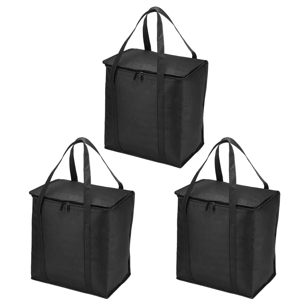 3Pcs 13"x8.1"x14" Insulated Reusable Grocery Bags Food Delivery Tote Bag, Black - Black
