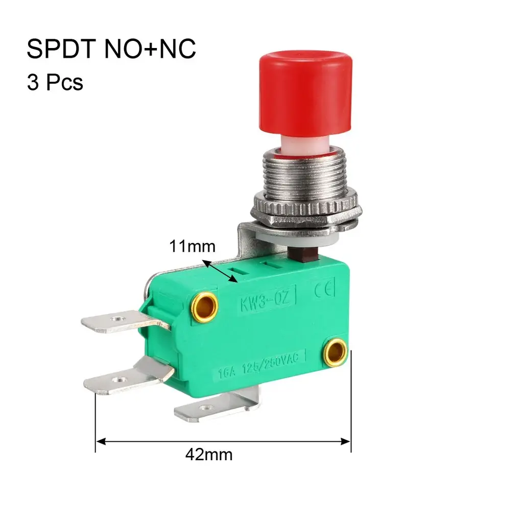 3Pcs 16a 125/250vac Spdt No Nc 3-Terminals Snap Button Type Micro Limit Switches - Red - Red - 3Pcs
