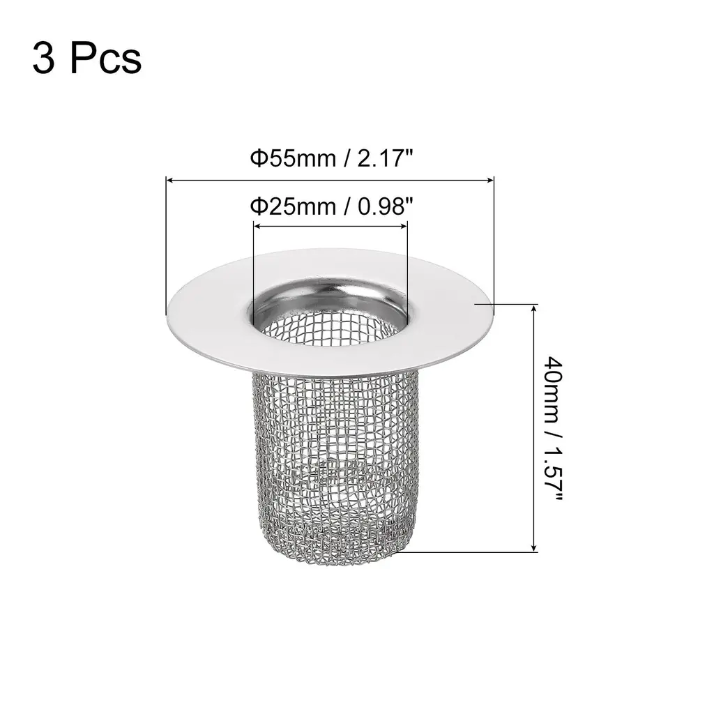 Description:Material: Our drain hair catcher is made of stainless steel, rust-free, and Overall thickening, which is more sturdy, durable, and not deformed.Mesh: Without stopping the flow of water, keeping your sink drain, or bathtub drain from creating blockage.Easy to Clean: The bathroom sink drain strainer is easy to use, install it directly. No need to assemble or disassemble anything. It effectively catches hair and any debris, ensuring smooth and fast drainage and preventing clogging.Use: Great for bathroom, kitchen, slop, tub, and lavatory sink. floor drains, water pipes, and more.Specification:Outer Diameter: 55mm/2.17"Inner Diameter: 25mm/0.98"Depth: 40mm/1.57"