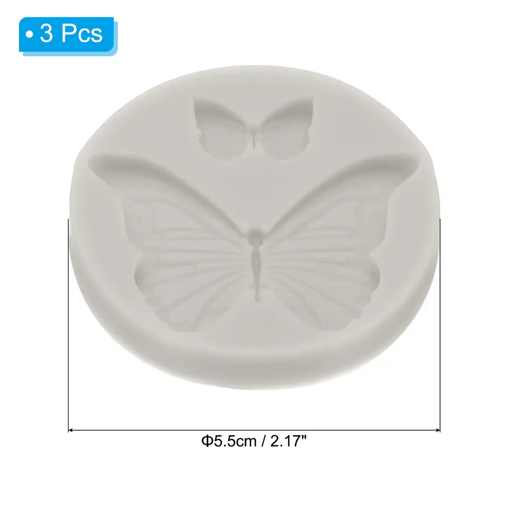 3Pcs Polymer Clay Mold, Fondant Mold 2 Butterfly Mold Silicone Rose - Grey
