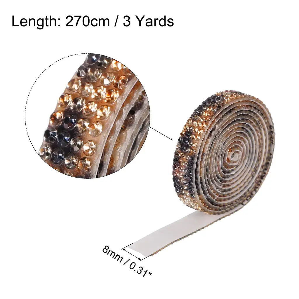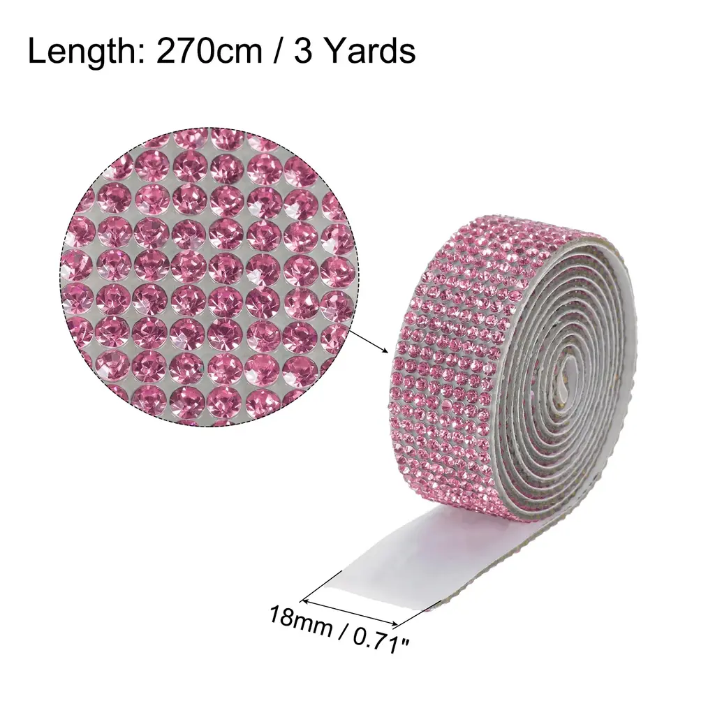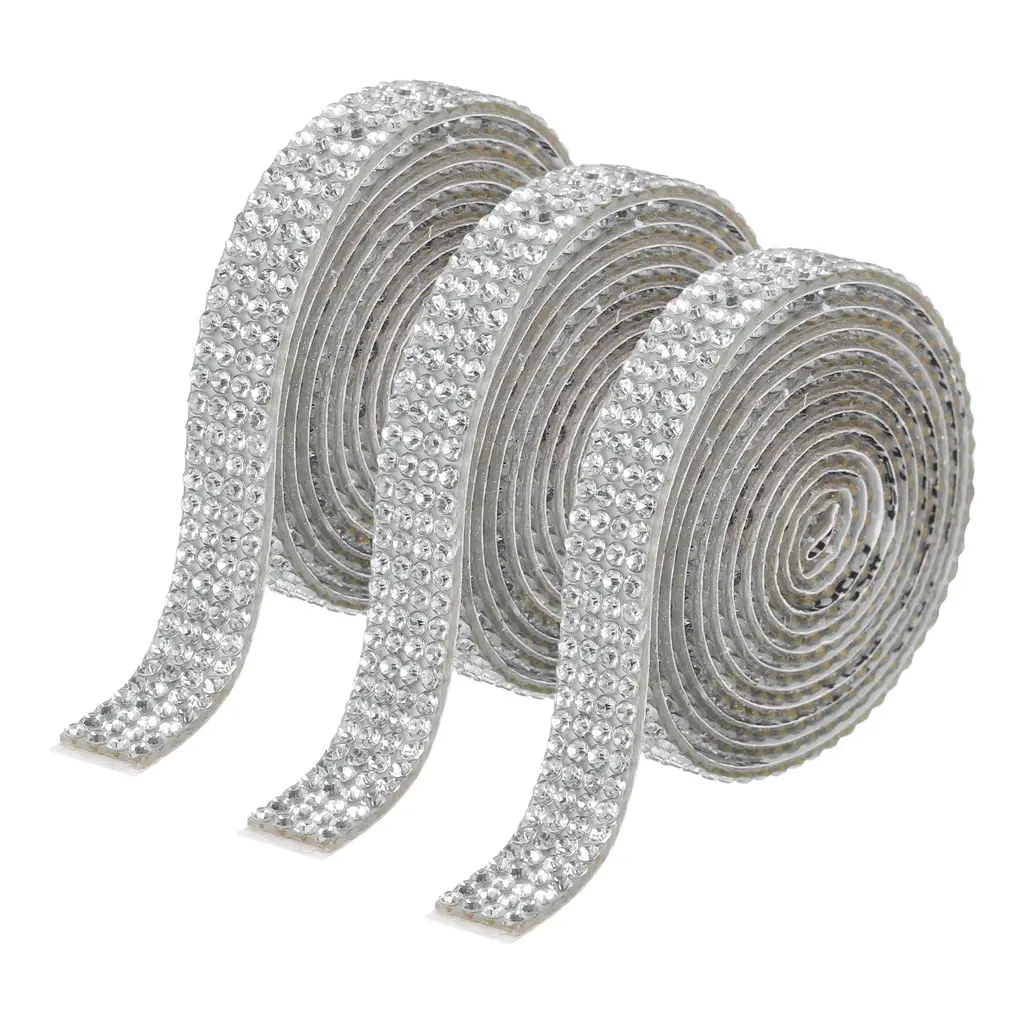 What is this?Crystal belts can mainly be used to decorate different occasions and items in your life. You can use it for decoration of furniture, cakes or handicrafts, and you can also use it for decoration on different parties, such as weddings, birthday parties, and other holidays, etc.What will I get?Color: WhiteMaterial: ResinTotal Size: 270cm x 8mm/3 Yards x 0.31 inches (L*D)In the package of: 3 Roll x Diamond RibbonAre there any advantages of the product?1. This crystal ribbon is made of resin, using good craftsmanship to make all the surfaces shine, smooth and flat, and they are bling no matter under natural light or light.2. The resin diamond ribbon has a double-sided tape, you can cut the size you want according to your needs, directly tear off the tape on the back during use, and stick it directly on the surface of the item.How to use it?You just need to cut the diamond ribbon to the length you need and use it to diy your items.What should I notice?Within 48 hours of use, do not let the craft come into contact with liquids