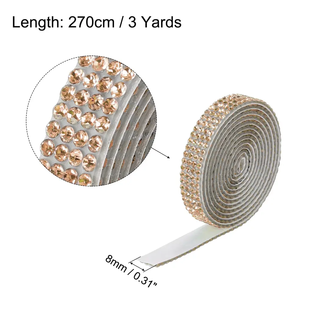 What is this?Crystal belts can mainly be used to decorate different occasions and items in your life. You can use it for decoration of furniture, cakes or handicrafts, and you can also use it for decoration on different parties, such as weddings, birthday parties, and other holidays, etc.What will I get?Color: White,Colorful,Blue,Green,Yellow,RedMaterial: ResinTotal Size: 270cm x 8mm/3 Yards x 0.31 inches (L*D)In the package of: 3 Roll x Diamond RibbonAre there any advantages of the product?1. This crystal ribbon is made of resin, using good craftsmanship to make all the surfaces shine, smooth and flat, and they are bling no matter under natural light or light.2. The resin diamond ribbon has a double-sided tape, you can cut the size you want according to your needs, directly tear off the tape on the back during use, and stick it directly on the surface of the item.How to use it?You just need to cut the diamond ribbon to the length you need and use it to diy your items.What should I notice?Within 48 hours of use, do not let the craft come into contact with liquids