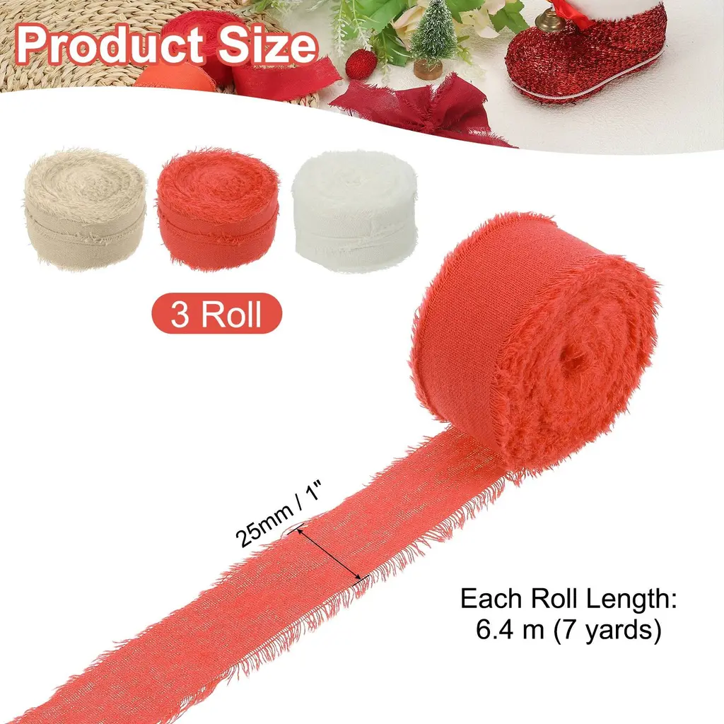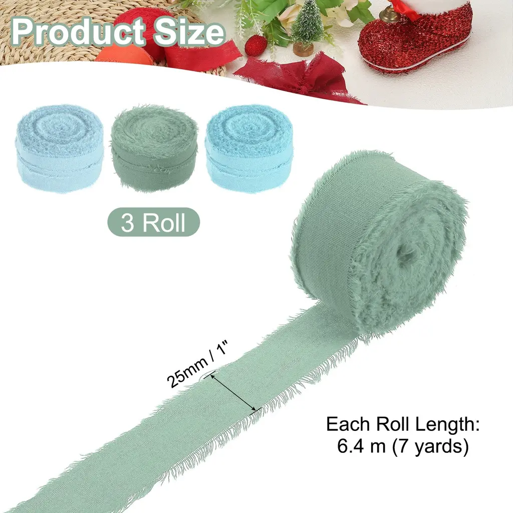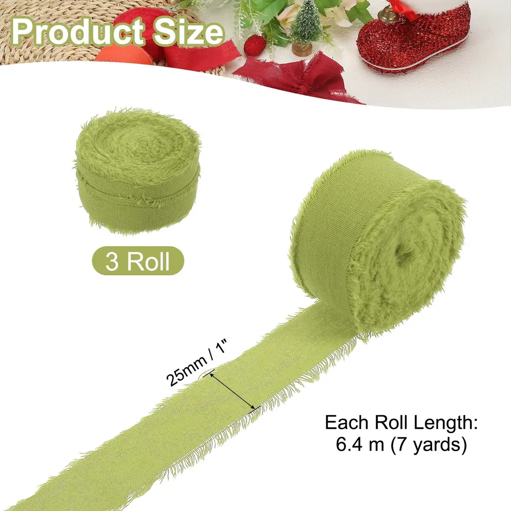 3Roll Cotton Handmade Fringe Ribbon 1"x21yd Frayed Fringe Ribbons - 7Yd - Black