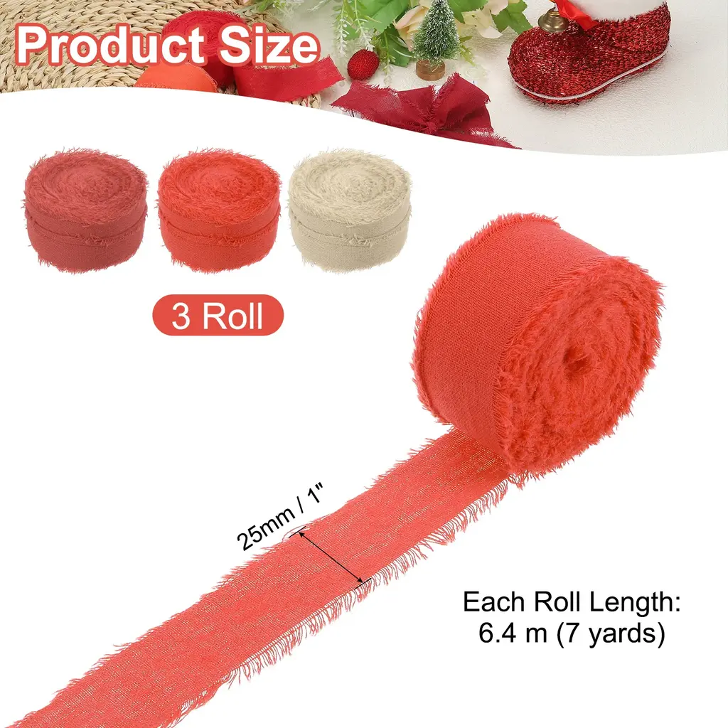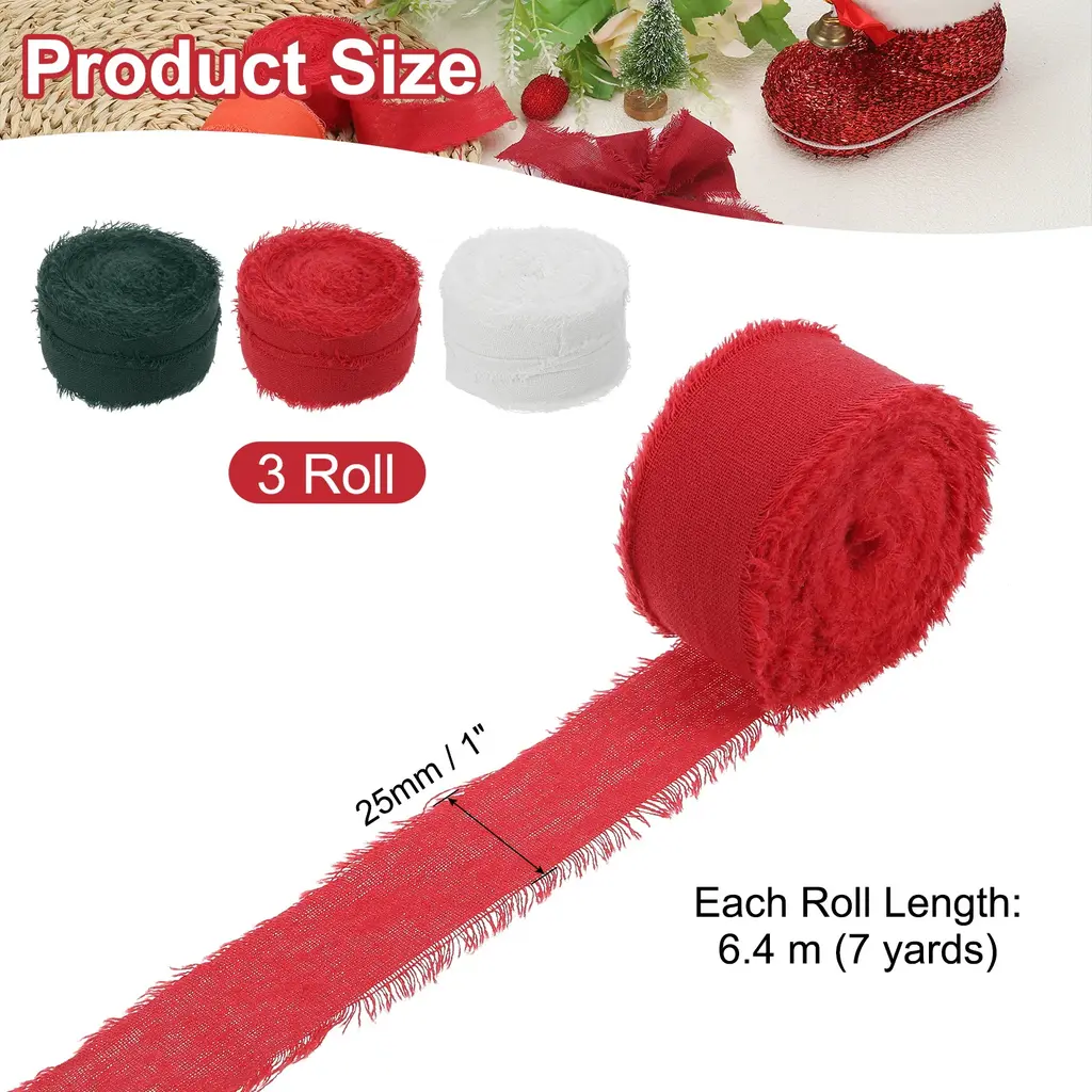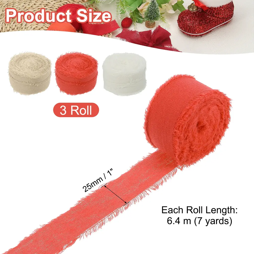 Cotton handmade fringe ribbon is a unique cotton decorative ribbon with delicate tassel decoration on the edge, which enhances the beauty and texture of various projects. Suitable for gift wrapping, flower arranging, scrapbooking, home decoration, clothing decoration, cards, wedding invitations, bridal bouquets, holiday party decorations, and DIY creations, etc.SpecificationColor: BeigeMaterial: 100% CottonWidth: 2.5 cm / 1 inchLength (Each Roll): 6.4 m / 7 yardsPacking List: 3Roll x Handmade Fringe Cotton RibbonAdvantageNATURAL MATERIAL: Made from cotton, this ribbon has a soft and natural texture, adding comfort and rustic charm to a variety of projects.FRINGE DESIGN: The handcrafted tassel detail provides a unique decorative touch that enhances the visual appeal of your piece.InstructionCut it to any length you want and secure the ribbon to your project by sewing, gluing, or tying.NOTE: Due to differences in natural light and display resolution, the color of the item shown in the photo may be slightly different from the actual item.