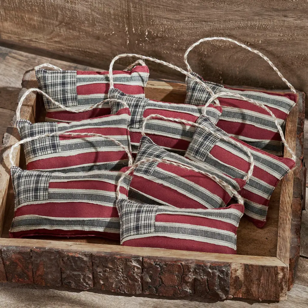 Description:One candy cane has tan fabric with red stars, another has cream and red checkered fabric, and the third has a neutral gray and tan plaid pattern. The candy canes each come with a string hanger at the top, perfect for using these candy canes to decorate a Christmas tree, for a simple, primitive feel. Specification: