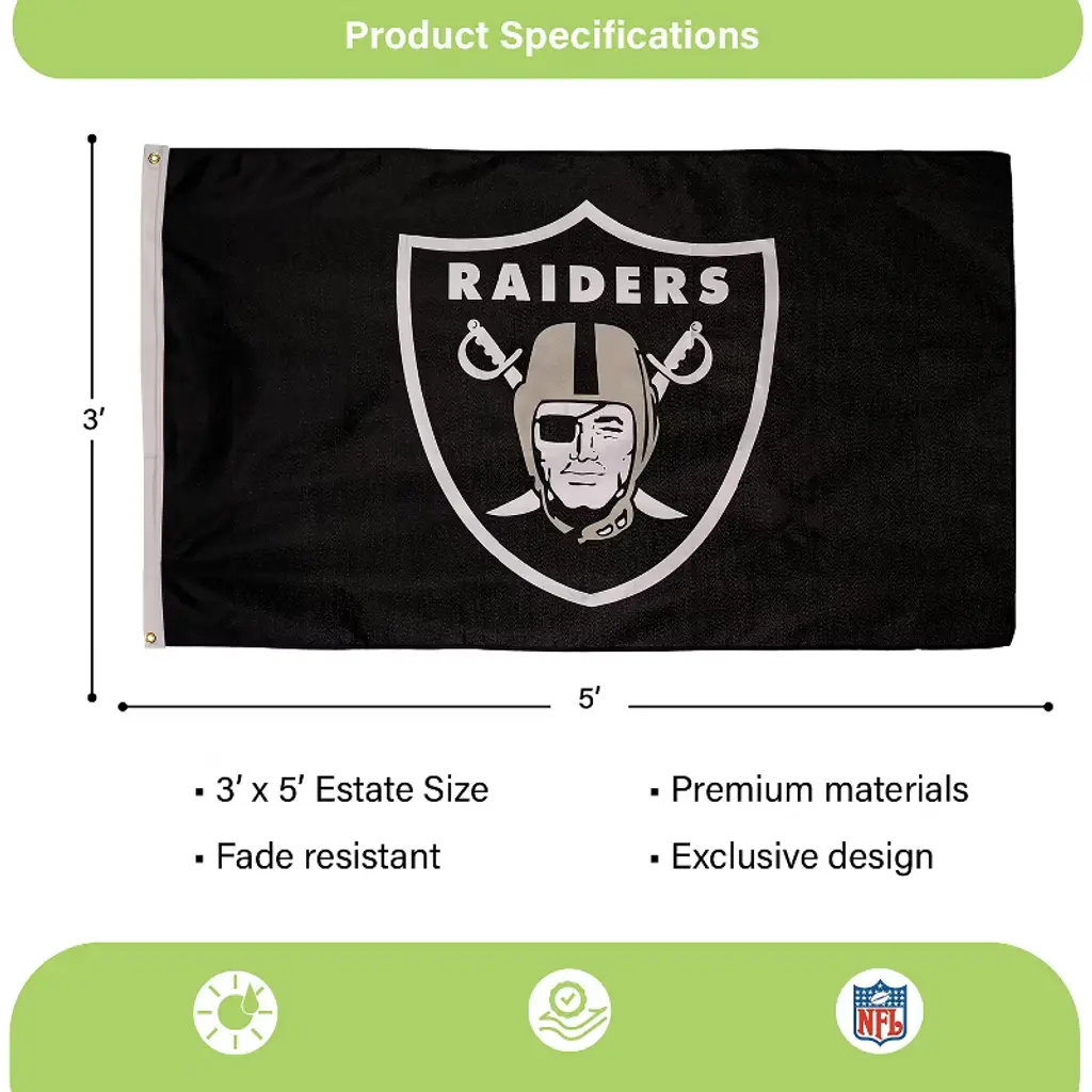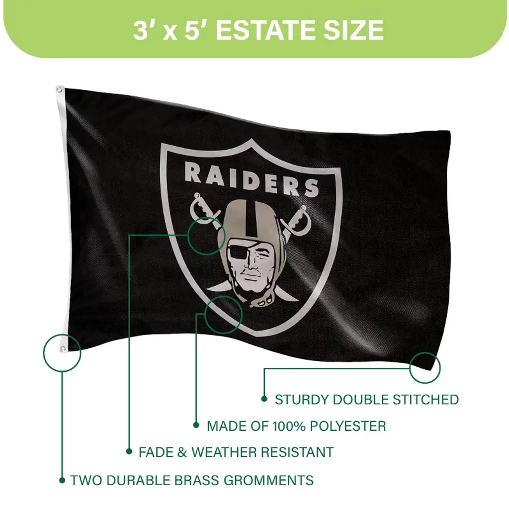 3'x5' Single Sided Flag W/ 2 Grommets, Las Vegas Raiders