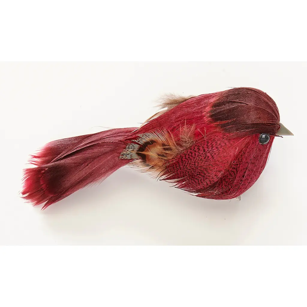 Enhance your décor with this charming 4.5" Feathered Bird with Metal Clip in Burgundy. Crafted from real feathers, this delightful bird adds a touch of natural beauty to any arrangement. Its metal clip at the bottom makes it easy to attach to wreaths, garlands, or floral displays, allowing for versatile decoration options. Whether used as a festive accent for the holidays or incorporated into everyday décor, this feathered bird is sure to enchant with its rich burgundy hue and lifelike texture.