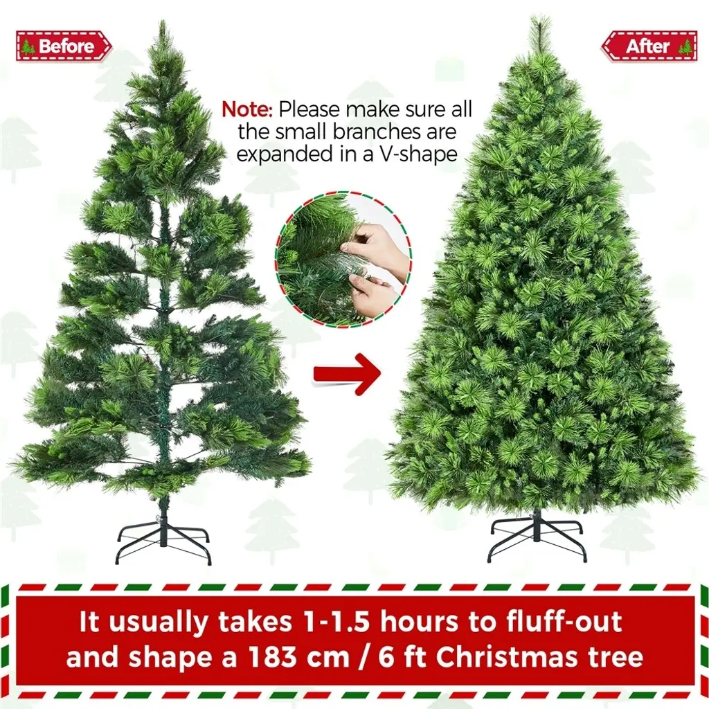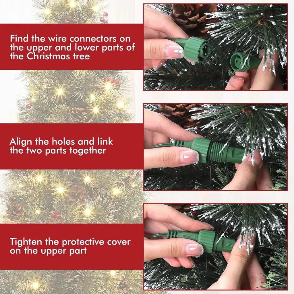Charming Holiday Decor: This artificial Christmas tree features a delicate potted base, lively green branches, snow frost and red berries, adding a touch of elegance and charming sophistication to your holiday decor, making it perfect for any setting Illuminate Your Space: Equipped with 108 warm LED lights and eight modes, this pre-lit Christmas tree creates a cozy atmosphere while allowing you to customize your lighting experience, making it an ideal choice for your porch, entryway, or living room Long-lasting Material: Made from premium plastic and iron, this Christmas decoration features a sturdy construction designed for longevity, ensuring the tree maintains its elegance year after year, making it a dependable addition to your festive decor Perfect Holiday Decoration: This realistic Xmas tree enhances any indoor or outdoor space, making it perfect for decorating parties, weddings, and other events while adding a festive atmosphere to your celebrations Effortless Assembly: Simply insert the poles into the stand and attach the potted base to have your beautiful Christmas tree ready in no time, allowing you to spend less time on assembly and more time enjoying the magic of the holiday season