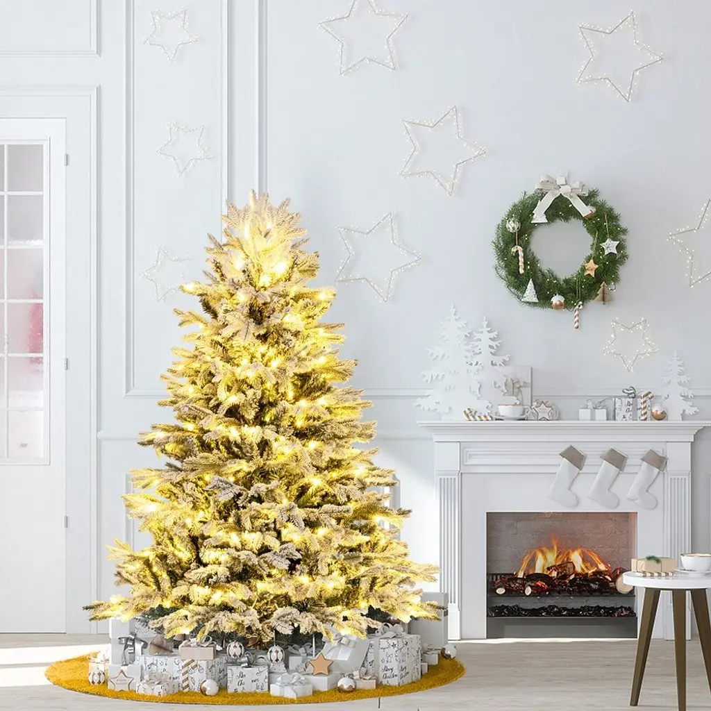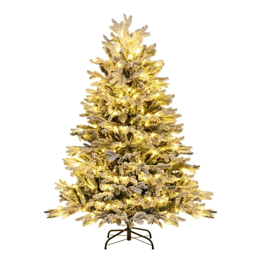 ▌ PRODUCT DETAILS: Description: Celebrate the winter season with this stunning 4.5 ft Christmas tree! Adorned with 688 flocked branch tips, it exudes a lush & vibrant charm that will captivate your guests & remind you of a blossoming spring. The Xmas tree comes to life at night with 200 LED lights, casting a warm white glow & creating a romantic ambiance. Crafted from durable PVC & highly simulated PE, this masterpiece is not only resistant to fire & allergies but also completely safe for your family. Setting up is a breeze with its hinged connections, minimizing your efforts & maximizing your joy. Also, we offer a pair of gloves for better protection. Supported by a sturdy folding metal stand secured with strong bolts, this Christmas tree remains stable & can be a realistic decoration for wide use, like home, office, school, or carnival. Its anti-slip foot pads ensure your floors are protected from scratches. Let the enchantment of this tree illuminate your holiday season, which is almost as good as a real tree. Features: 688 mixed PE & PVC branch tips are fireproof &non-allergic 200 LED lights are low-voltage, much safer & energy-saving Warm white lighting for a loving holiday vibe in the shop, home or office Upgraded hinged frame to make branch tips expand automatically 2-section design & insert-in connection for a simple setup experience Strong metal stand with anti-slip foot pads to avoid sliding Bottom stand with folding design to ensure easy storage Snowy spectacular tree with unique white flocking to match the winter season Please note that ornaments are not included Specifications: Color: Green & White Material: PE, PVC, Flocking, Metal Tree Height: 4.5 ft Tree Width: 3.1 ft Diameter of Stand: 16" Number of Sections: 2 Number of Branch Tips: 688 Number of LED Lights: 200 Net Weight: 17 lbs Package Includes: 1 x Christmas Tree 1 x Pair of Gloves 1 x User Guide