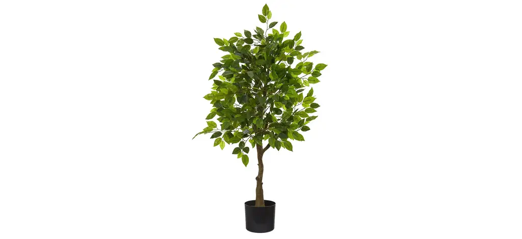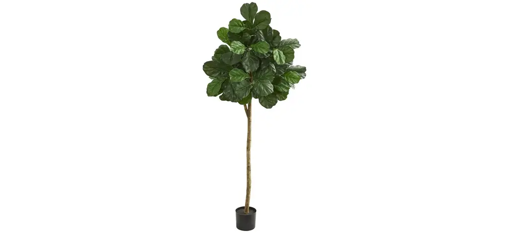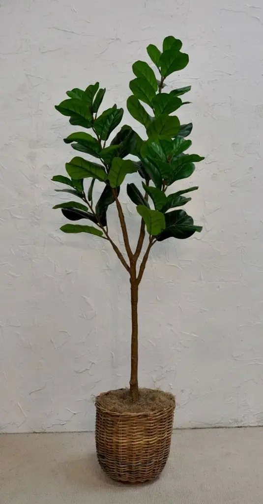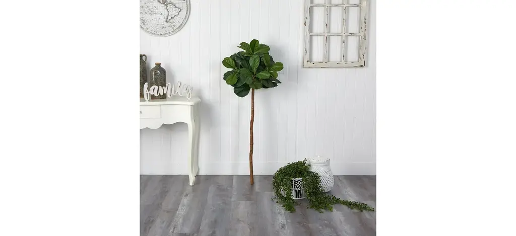 Transform your space into a jungle with the help of this artificial Fiddle Leaf Artificial Tree (No Pot). Large, glossy Fiddle Leaves stem from a thin trunk and deliver a full, bushy look full of green foliage. Standing 4.5', DIY and house in your own planter, curate in spaces that need some green. Perfect for apartments, narrow spaces and cozy rooms.