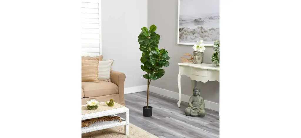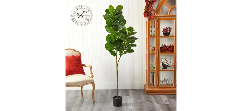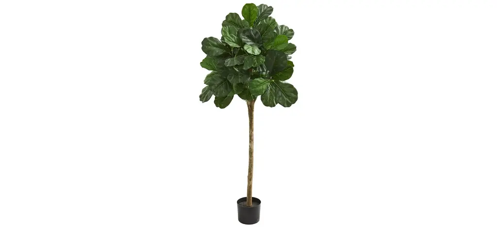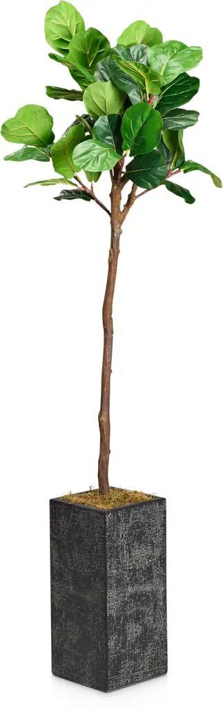 Two different sized stems - showcase large, glossy Fiddle Leaf leaves that look incredibly lifelike in the Fiddle Leaf Fig Artificial Tree. Trick all your friends into thinking that you can grow a Fiddle Leaf Fig in any indoor area. Standing 4.5' from a planter (included in height), curate in tight spaces. Perfect for an apartment, bathroom, foyer, awkward corner, or bedroom.