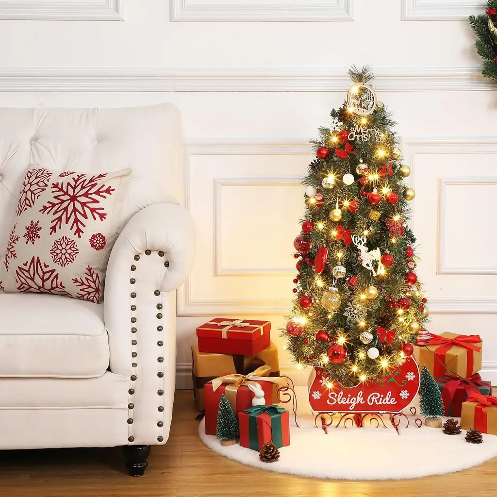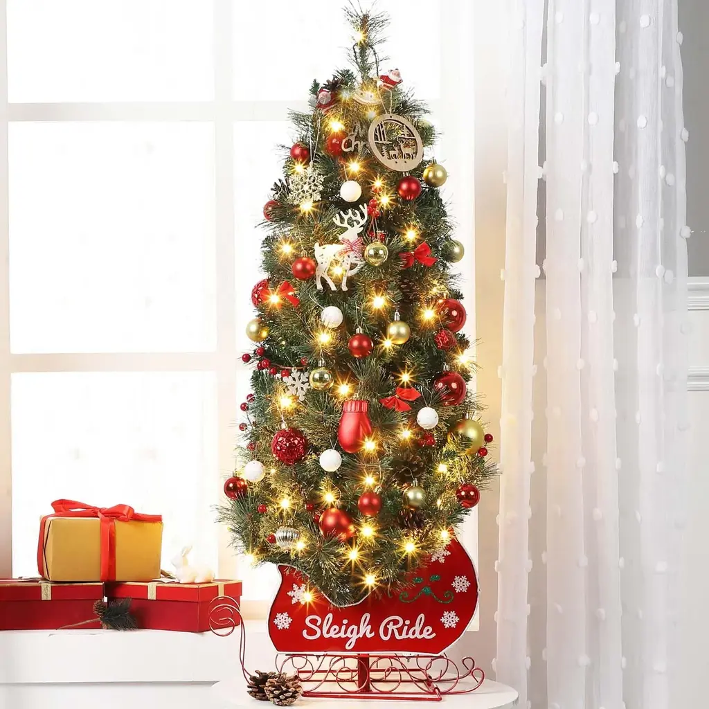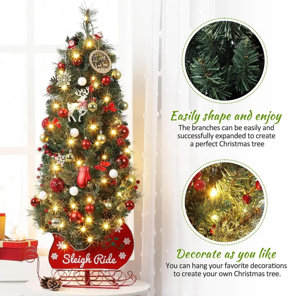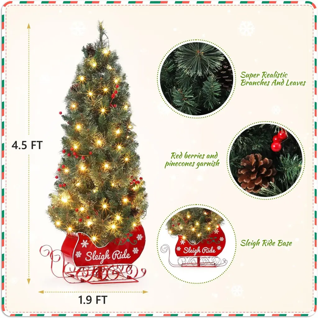 4.5ft Pre-Lighted Artificial Sleigh Base Christmas Tree - 4.5 Foot - 4.5 Foot