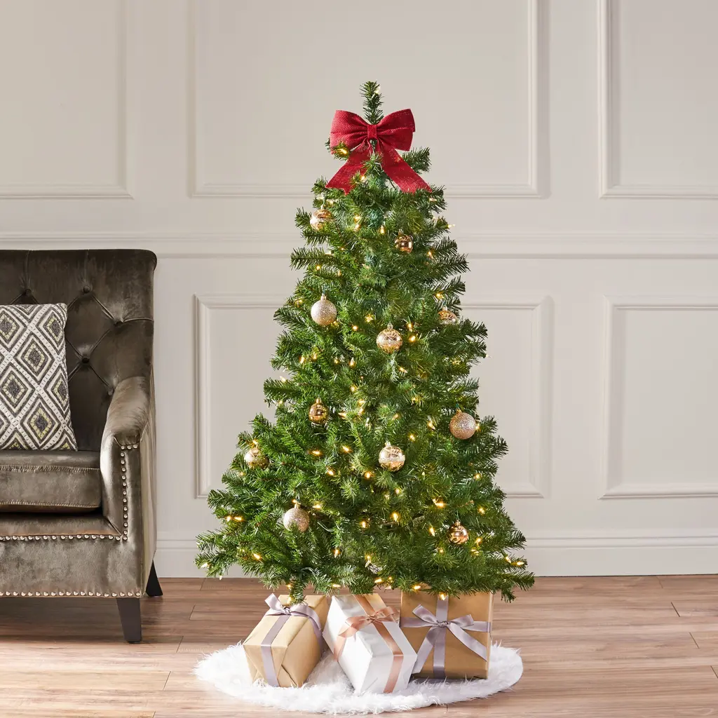 4.5ft Pre-Lit Christmas Tree With 200 Clear Led Lights, Sturdy Metal Stand, And Easy Assembly - Green
