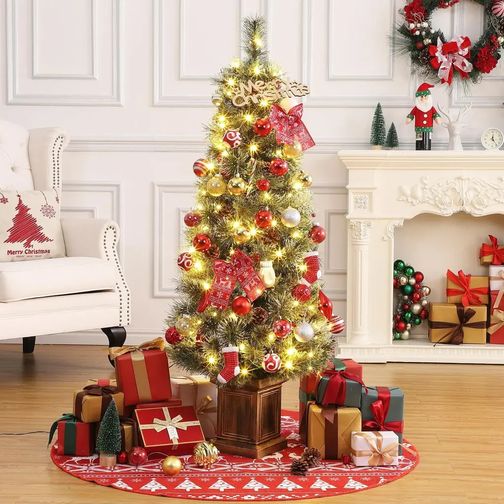 Premier Material: Made from premium PVC and sturdy metal, this artificial Christmas tree is non-allergenic and fire-resistant, ensuring a safe and cheerful atmosphere for all your holiday celebrations. Stable Base: The 4.5-ft Xmas tree features a heavy light box base filled with cement, providing excellent stability, while ten lights cast a warm glow that beautifully enhances your home or office decor. Fullness and Density: This delightful holiday Christmas tree has easy-to-fluff branches accented with red berry clusters, resulting in a luxurious and inviting look that enhances the charm of your festive decorations. Battery Box: The waterproof battery box includes a 16-hour automatic shut-off timer to extend battery life, while dual-color LED lights with eight flashing modes create a cheerful and festive atmosphere in any space. Easy Set Up: With pre-attached LED lights, this potted Christmas tree allows for effortless setup and takedown, enabling you to quickly achieve your desired holiday look without the frustration of tangled wires.