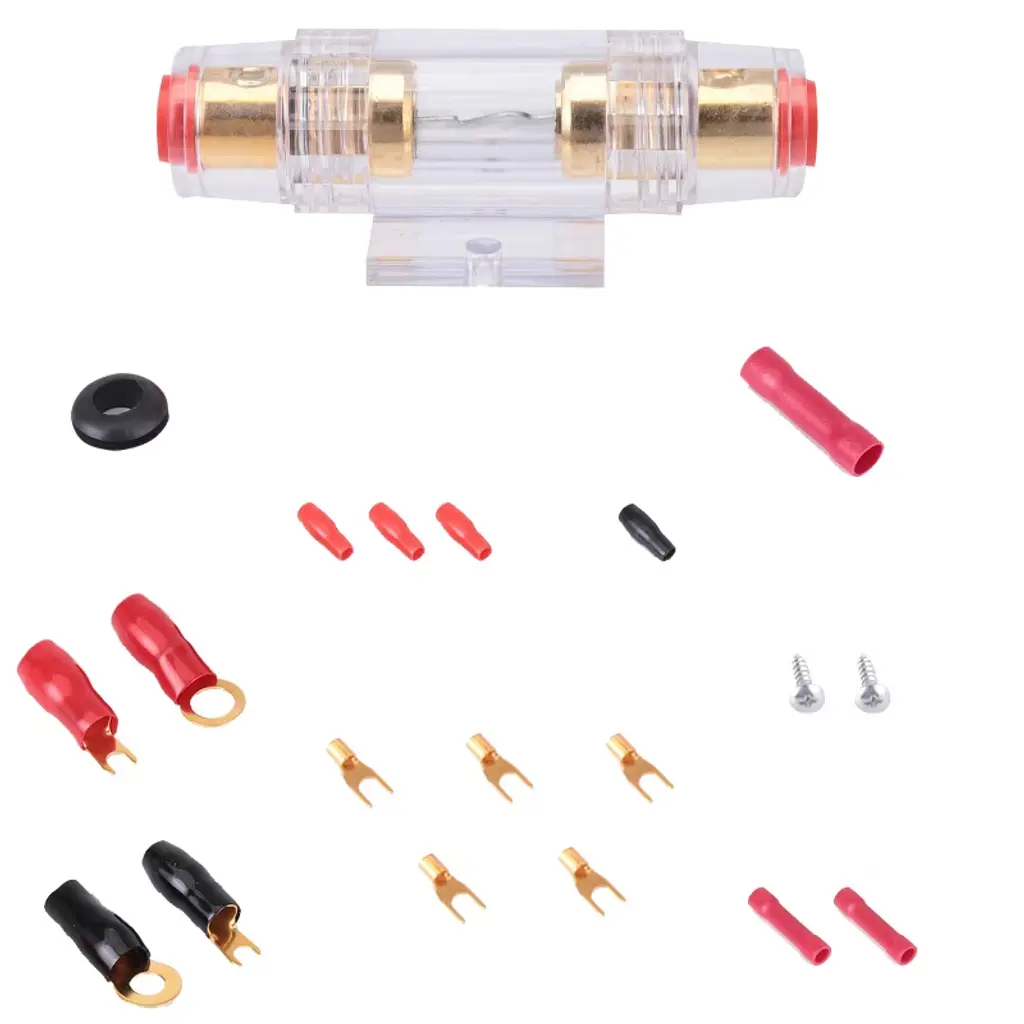 The Pyle PLAM40 Car Stereo Wiring Kit provides everything you need for a smooth amplifier and subwoofer installation. Designed for high-performance car audio setups, this 4-AWG kit includes a 20ft red power wire and 4ft black ground wire, ensuring optimal power flow and grounding. A 20ft RCA cable enhances sound clarity, while the 12-gauge stereo speaker wire guarantees reliable audio transmission. The kit also includes a water-resistant inline fuse holder with a 60A gold-plated fuse for secure power connections. Ideal for vehicle audio installations, this all-in-one wiring kit comes with assorted connectors, cable ties, and a black grommet for a clean, professional finish.
