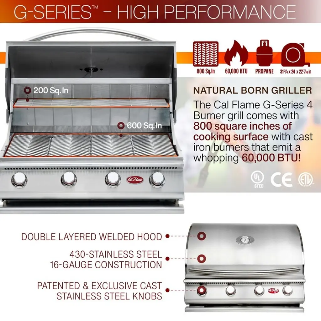 Make outdoor entertaining a breeze with this 4-burner, 6 ft. Stone Veneer and Tile Propane Gas Grill Island in Stainless Steel. Featuring a G4 4-burner grill and a 27 in. wide access door for storage, this beautiful island is perfect for any backyard. The durable stainless steel construction ensures lasting quality, and the porcelain tile design countertop with a stack stone base adds a stylish flair. With liquid propane hook-ups ready to go, you and your guests can create new memories and enjoy delicious BBQ in no time.Features:Additional Details:
