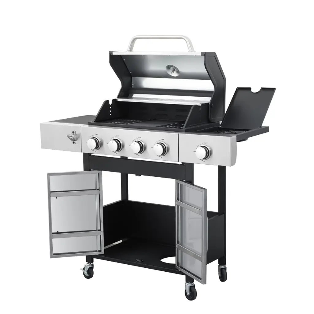4-burner Propane Gas Bbq Grill With Side Burner, 46790btu Output With Enameled Cast Iron Cooking Grids For Outdoor Barbecue, Stainless Steel