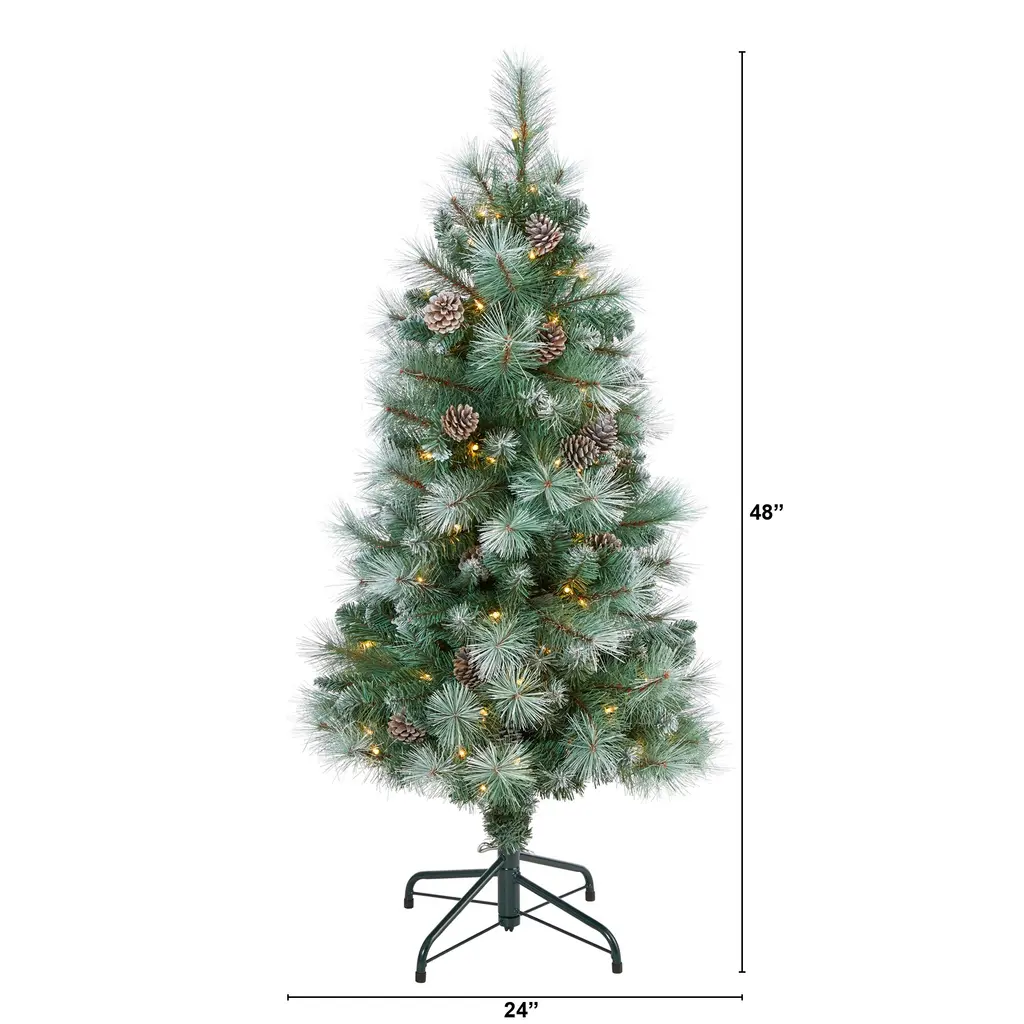 4' Frosted Tip Mountain Pine Christmas Tree With 100 Clear Lights - Green - Green