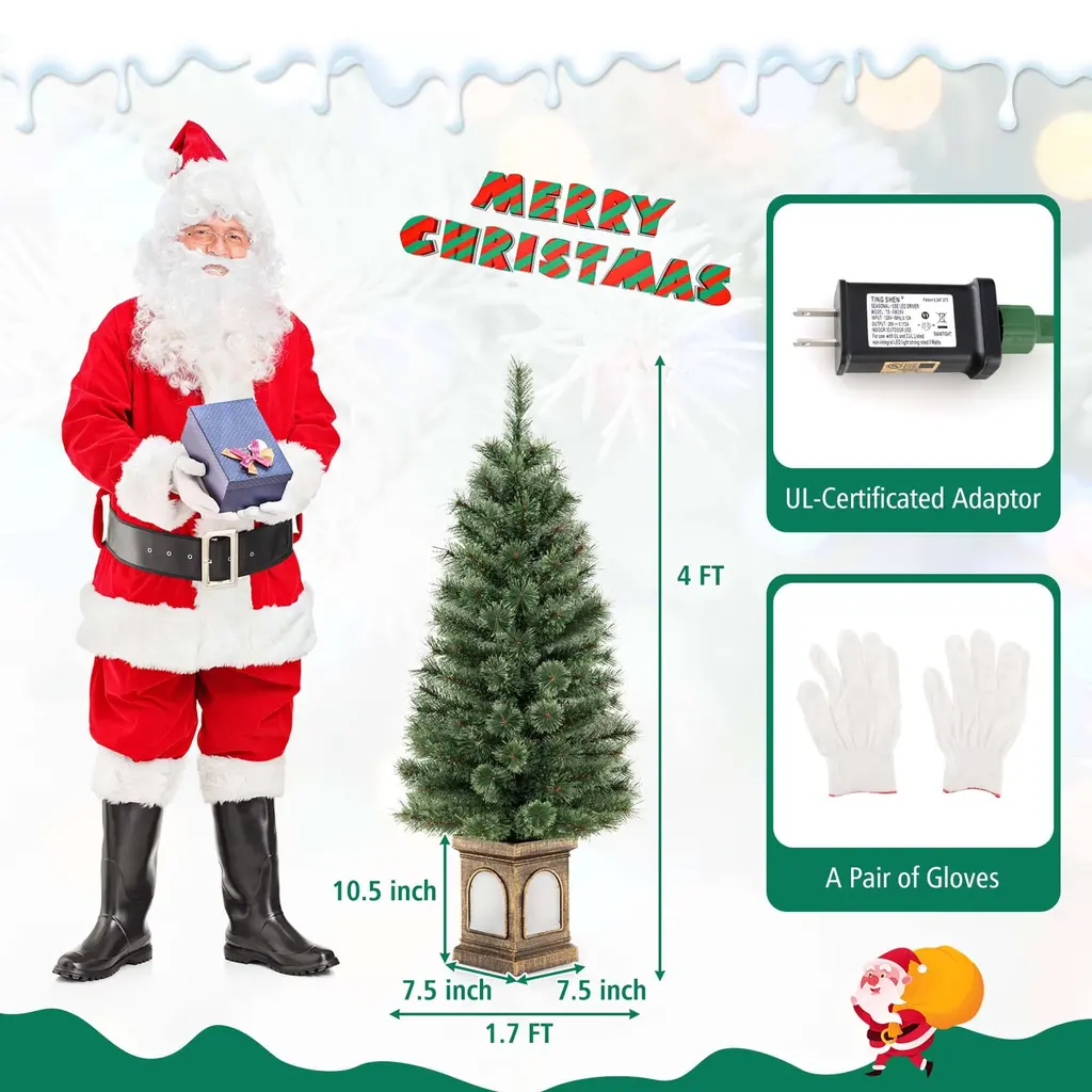 4 Ft Pre-Lit Potted Christmas Tree 3 Dynamic Modes Remote Control - 1 Pcs