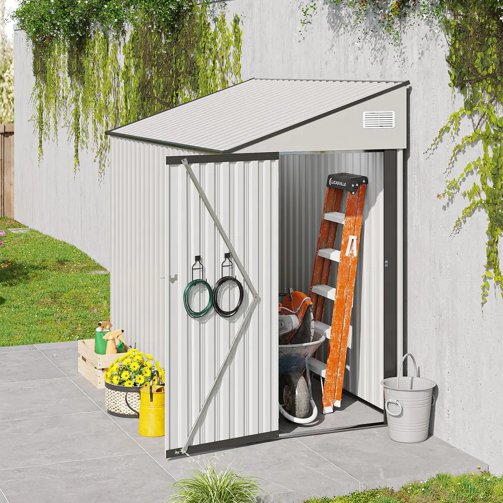 4 Ft. W X 8 Ft. D Metal Lean-To Storage Shed,multi-Functional Storage Shed - White