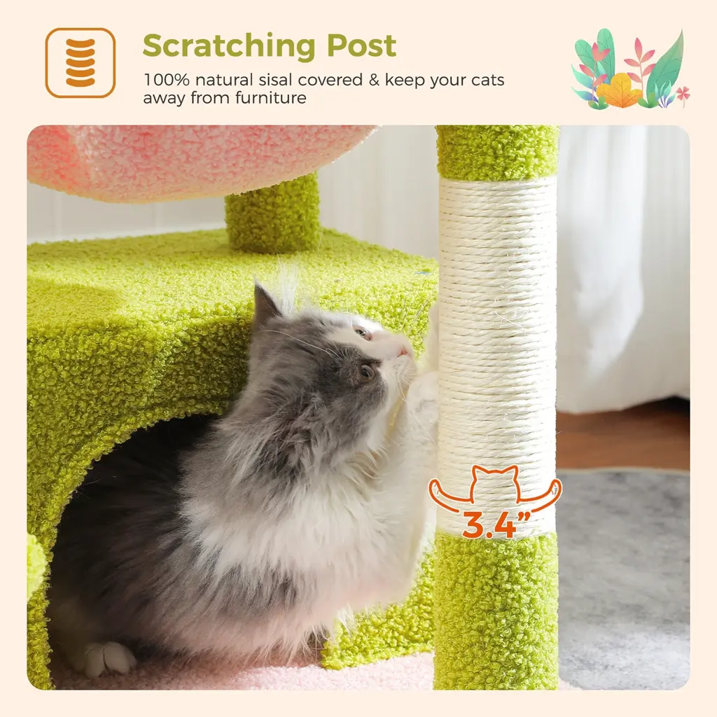 4-In-1 Multi-Level Cat Tower, Cat Tree With Large Cat Condo, Cat Scratching Post For Cats With Deep Hammock & Cozy Top Perch - Pink