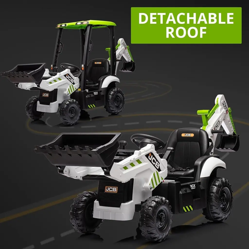 4 In 1 Ride On Excavator & Bulldozer, Front Loader, 12v - White