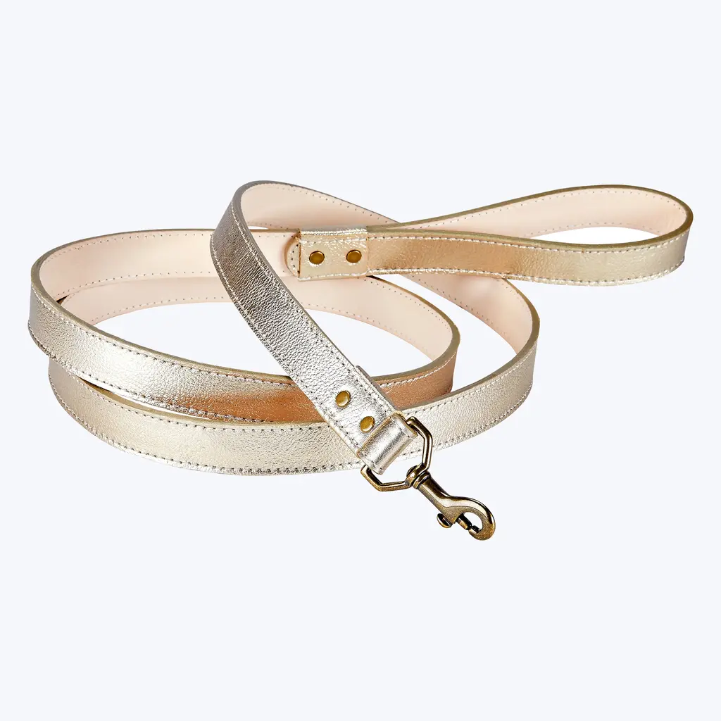 The 4" Leather Dog Leash by Graphic Image is handmade in six classic colors. Featuring a clean design and comfy handle, this timeless dog leash is detailed with an antique brass latch. A sophisticated accessory for your canine companion.