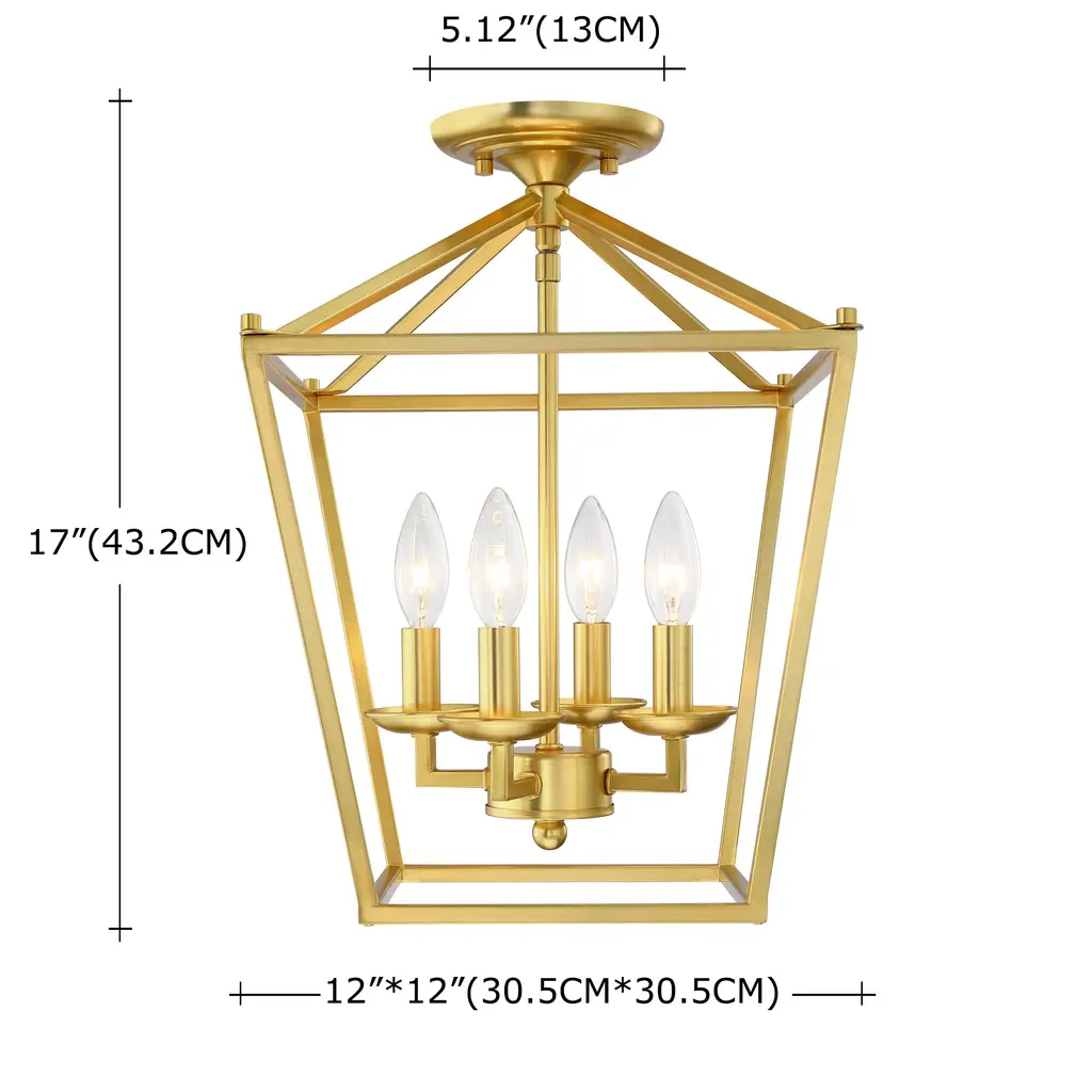 The charming 4-Light geometric cage semi-flush mount illuminates your space in classic style. The fixture features an open-shaped shade that is fully crafted from metal. Topping 4 short candle-style sockets with b10 bulbs of up to 60 watts each sit inside (Bulbs are not included) that disperse ambient light throughout your home. Sure to be an ideal choice for any hallway, kitchen, living room, stairway, foyer or bedroom.