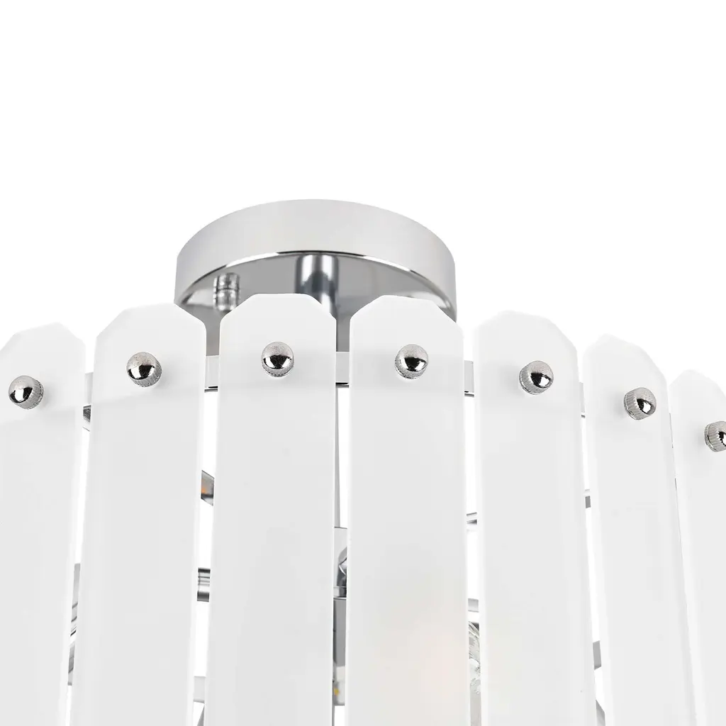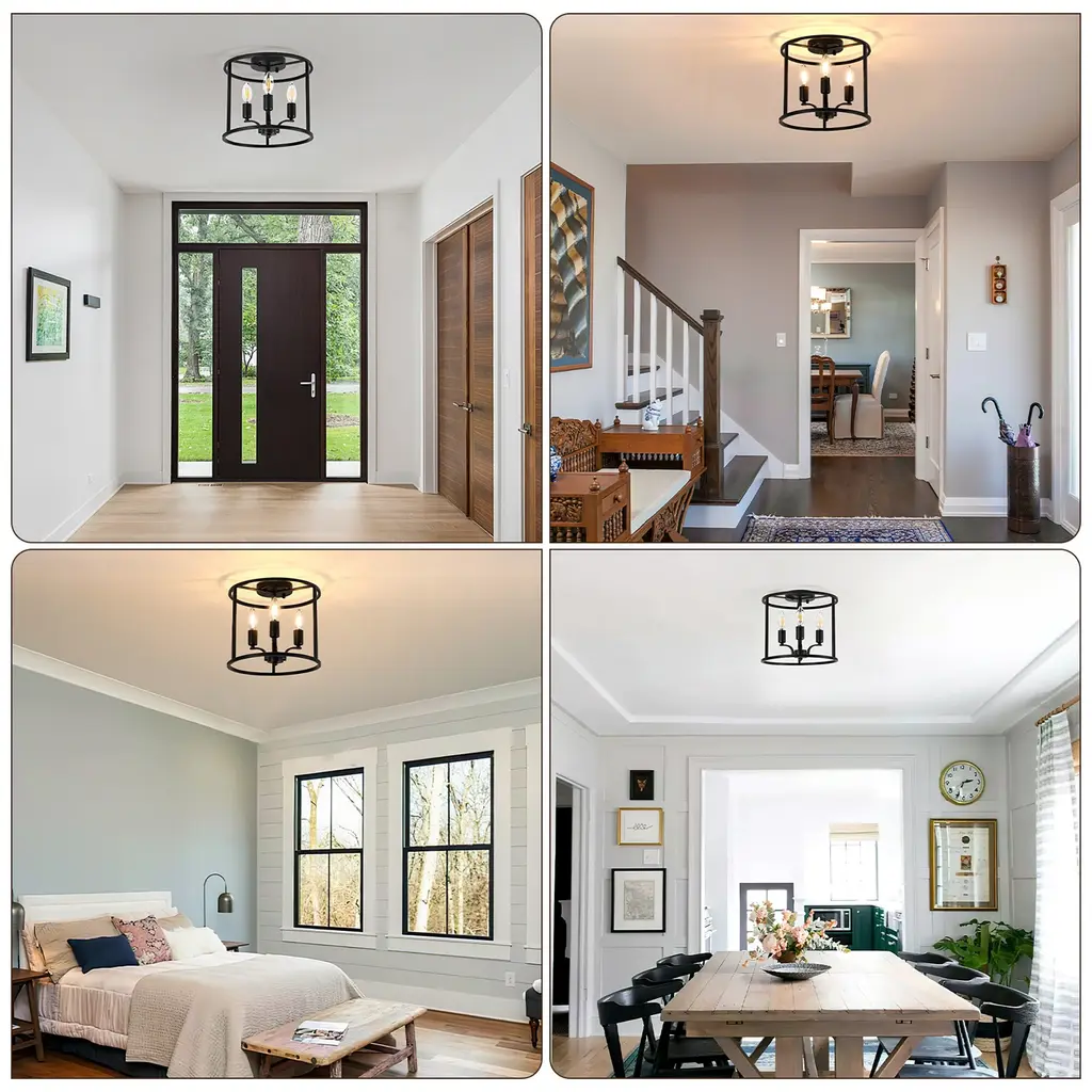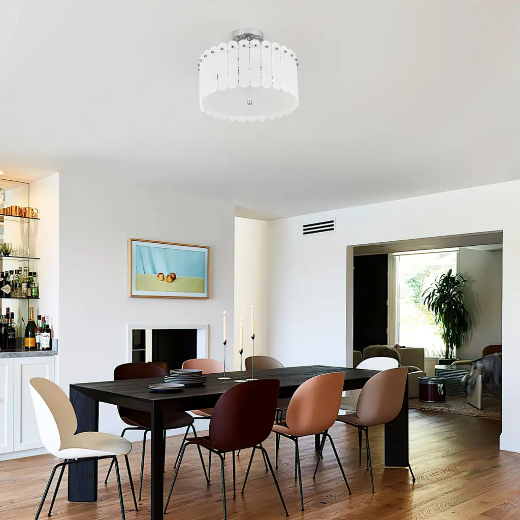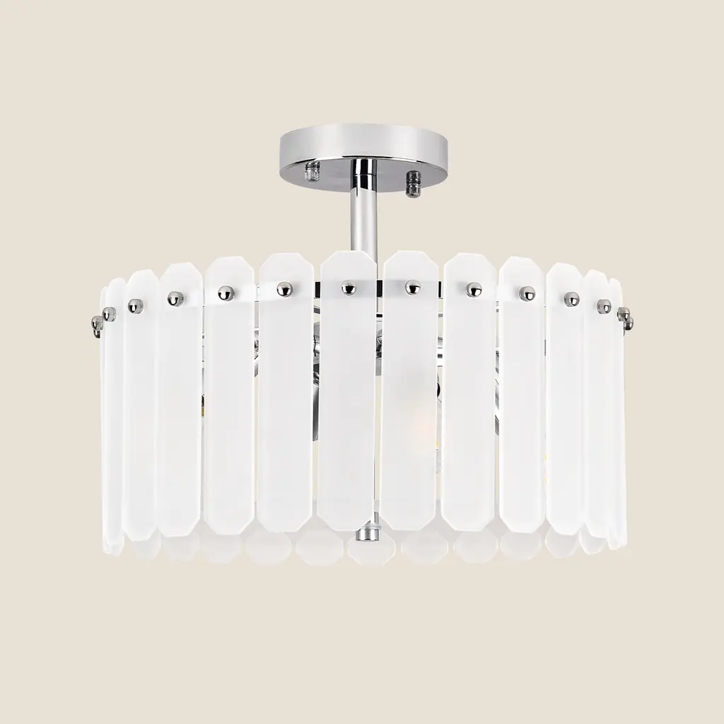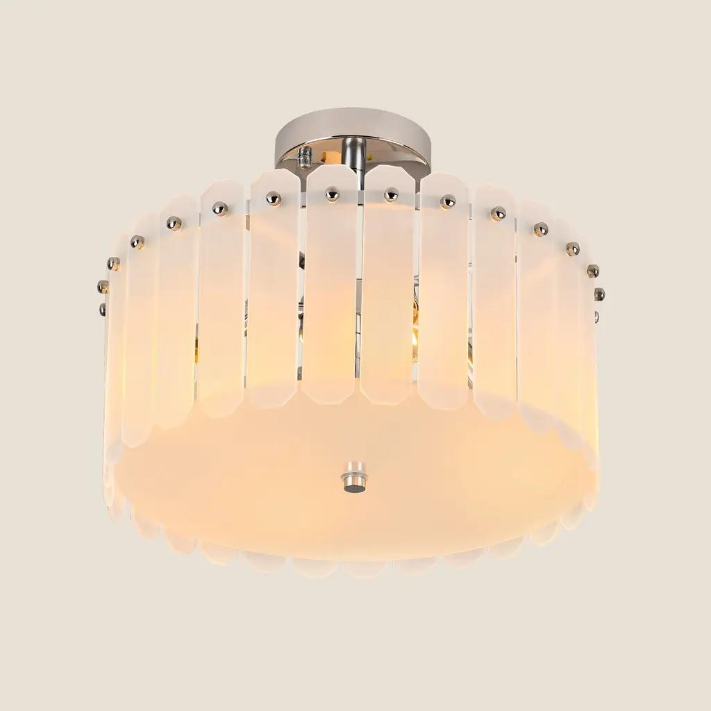 Detail:Add a touch of modern sophistication to your space with this elegant 4-light flush mount fixture. Featuring a sleek chrome finish and a unique frosted acrylic shade design, this light offers both contemporary style and soft, diffused illumination. Perfect for living rooms, dining areas, or bedrooms, its drum silhouette blends seamlessly with various decor styles. The fixture accommodates 4 E12 base bulbs (not included), ensuring ample lighting for your home while enhancing its ambiance. Durable, easy to install, and visually striking, this ceiling light transforms any room into a refined retreat.Features:Dimensions:Product Care:Cleaning: Avoid using chemical cleaners, solvents or abrasive materials. Use a dry, soft cloth to wipe away dust. For a more thorough cleaning, turn off the circuit breaker and disconnect the power supply. Then gently wipe the exterior of the fixture with a dry or slightly damp, clean cloth.Country of Origin: China