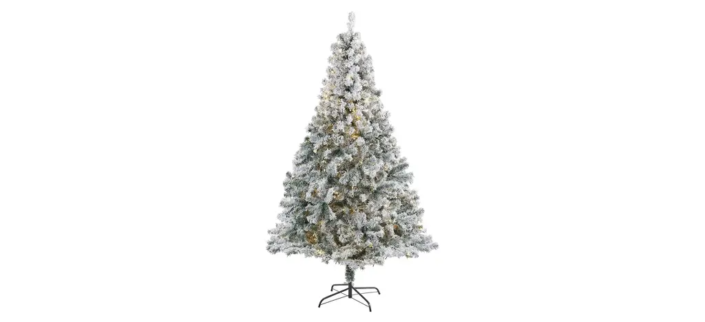 Add some shimmer to your holidays with this modern tree. The lush, full foliage is pre-lit with 150 warm, clear lights, all housed on a sturdy iron frame. This tree comes with extra bulbs, a sleek metal stand, and features stay-lit technology for a hassle-free festive season.