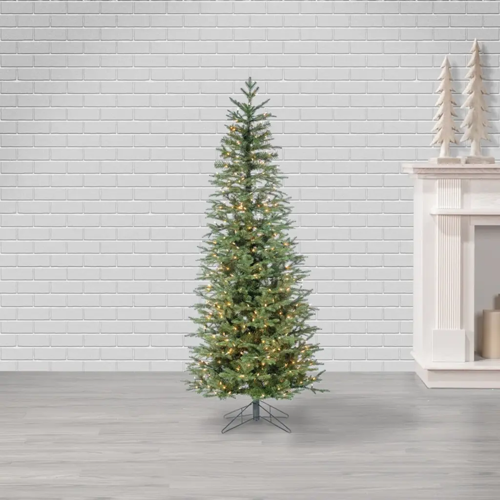Get in the holiday spirit with this artificial pine Christmas tree. With a lush and full shape, it features 200 steady lights for a warm and inviting glow. The steel frame ensures durability, while the included stand makes setup a breeze. Time to deck the halls!
