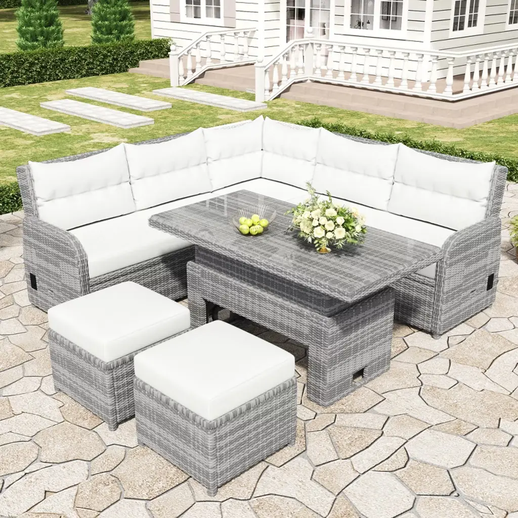 This versatile sofa and table set effortlessly adapts to various living spaces, offering endless configuration options to enhance the beauty of your patio, porch, backyard, balcony, poolside, garden, lawn, bistro, conservatory, and other suitable indoor and outdoor areas. Crafted from all-weather wicker, it combines toughness, durability, and comfort, making it ideal for year-round use. Additionally, its easy-to-manage design ensures hassle-free maintenance, allowing you to enjoy its stylish and practical benefits with minimal effort.