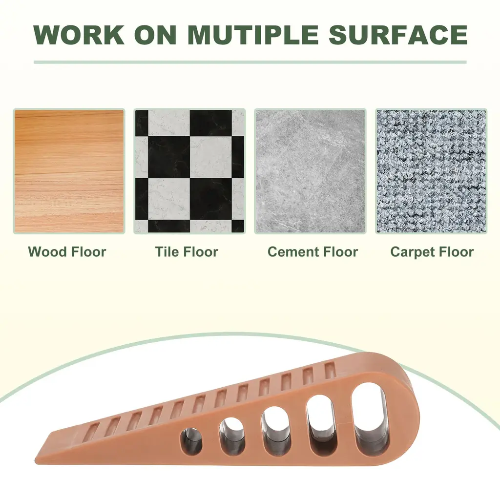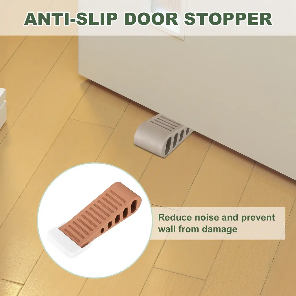 Description :Anti-Slip Design - The door stopper has a double-sided anti-slip function, with a horizontal stripe design on the surface, which increases the friction with the door and can easily fix the position of the door. Stackable design and hollow design make it suitable for a wider range of gaps, and evenly distributed force, raises its grip and is not easy to move.Material - The door stoppers for the bottom of the door are made of TPR, soft and non-slip, they will not scratch the surface of the floor or door; It has elasticity and can adapt to larger gaps, and can also be used on floors of various materials (wooden boards, ceramic tiles, and so on), and the trapezoidal design also provides cushioning force when closing the door.Easy to Use and Store - Place the door stopper on the floor at a suitable distance, which is easy to replace and does not affect cleaning. Comes with a holder that you can stick to the door or wall for storage the door stopper when not in use; In addition to being used as a buffer and fixing when opening the door, the door stopper can also be used when closing the door to stop it from opening from the outside.Wide Applications - These door stops can be applied to various occasions, such as offices, homes, shops, hotels, etc; These door stops ensure that doors do not accidentally slip and close, so you don't have to worry about the door suddenly closing in winds, protecting the door and walls.Specifications:Material: TPRColor: BlackTotal Size: 125 mm x 40 mm x 30 mm / 4.92 Inch x 1.57 Inch x 1.18 Inch (L*W*H)Fit for distances with door gaps: More than 30 mm / 1.18 InchPackage Content:4 Pcs x Door Stoppers with Holder