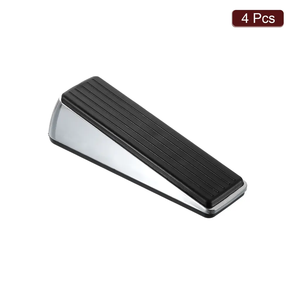 Description :Anti-Slip Design - The door stopper has a double-sided anti-slip function, with a horizontal stripe design on the surface, which increases the friction with the door and can easily fix the position of the door. The bottom hollowed-out anti-slip design keeps the door stable on the floor, with even force distribution during use, and is not easy to move.Material - The door stoppers for the bottom of the door are made of Zinc Alloy + PVC, soft and non-slip, they will not scratch the surface of the floor or door; It has elasticity and can adapt to larger gaps, and can also be used on floors of various materials (wooden boards, ceramic tiles, and so on), and the trapezoidal design also provides cushioning force when closing the door.Easy Using - Place the door stopper on the floor at a suitable distance, which is easy to replace and does not affect cleaning. In addition to being used as a buffer and fixing when opening the door, it can also be used when closing the door to stop it from opening from the outside.Wide Applications - These door stops can be applied to various occasions, such as offices, homes, shops, hotels, etc; These door stops ensure that doors do not accidentally slip and close, so you don't have to worry about the door suddenly closing in winds, protecting the door and walls.Specifications:Material: Zinc Alloy + PVCColor: Silver Total Size: 120 mm x 40 mm x 33 mm / 4.73 Inch x 1.58 Inch x 1.3 Inch (L*W*H)Fit for distances with door gaps: Less than 33 mm / 1.3 InchPackage Content: 4 Pcs x Door Stoppers