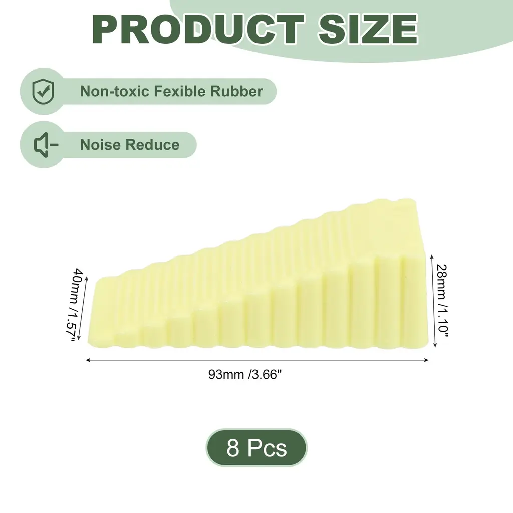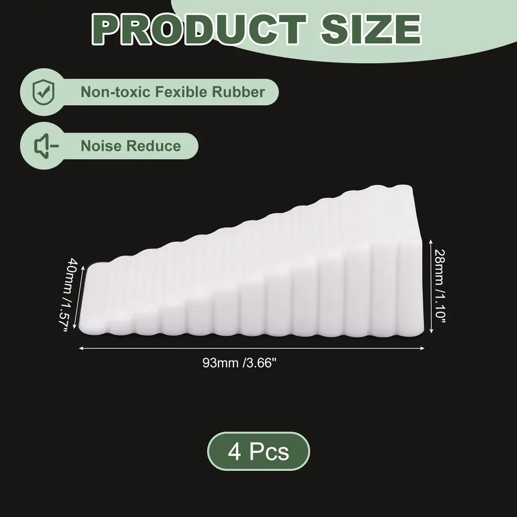 Description :Anti-Slip Design - The door stopper has a double-sided anti-slip function, with a horizontal stripe design on the surface, which increases the friction with the door and can easily fix the position of the door. The bottom hollowed-out anti-slip design keeps the door stable on the floor, with even force distribution during use, and is not easy to move.Material - The door stoppers for the bottom of the door are made of ABS, soft and non-slip, they will not scratch the surface of the floor or door; It has elasticity and can adapt to larger gaps, and can also be used on floors of various materials (wooden boards, ceramic tiles, and so on), and the trapezoidal design also provides cushioning force when closing the door.Easy Using - Place the door stopper on the floor at a suitable distance, which is easy to replace and does not affect cleaning. In addition to being used as a buffer and fixing when opening the door, it can also be used when closing the door to stop it from opening from the outside.Wide Applications - These door stops can be applied to various occasions, such as offices, homes, shops, hotels, etc; These door stops ensure that doors do not accidentally slip and close, so you don't have to worry about the door suddenly closing in winds, protecting the door and walls.Specifications:Material: ABSColor: GreenTotal Size: 93 mm x 40 mm x 15 mm / 3.66 Inch x 1.57 Inch x 0.59 Inch (L*W*H)Fit for distances with door gaps: Less than 15 mm / 0.59 InchPackage Content:4 Pcs x Door Stoppers