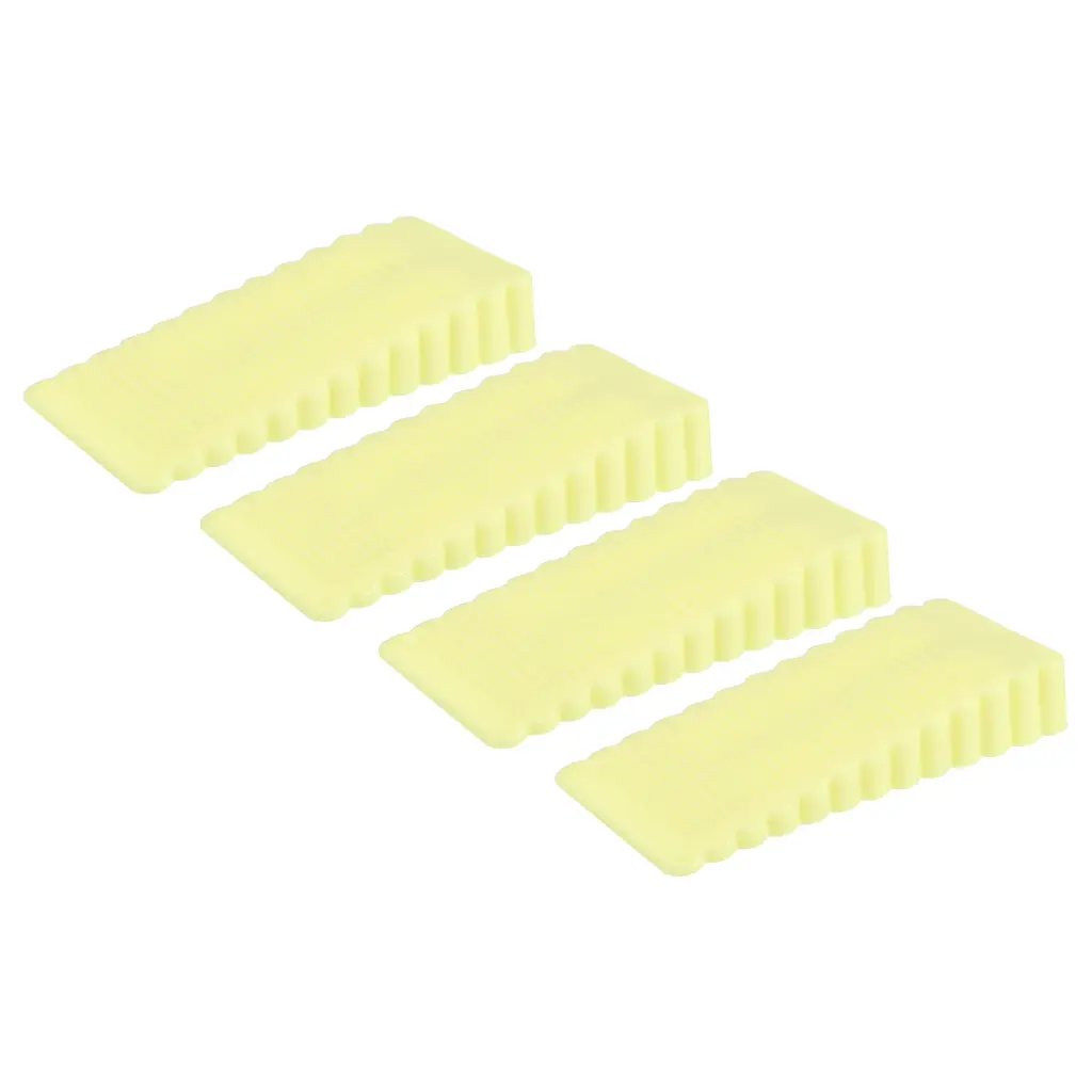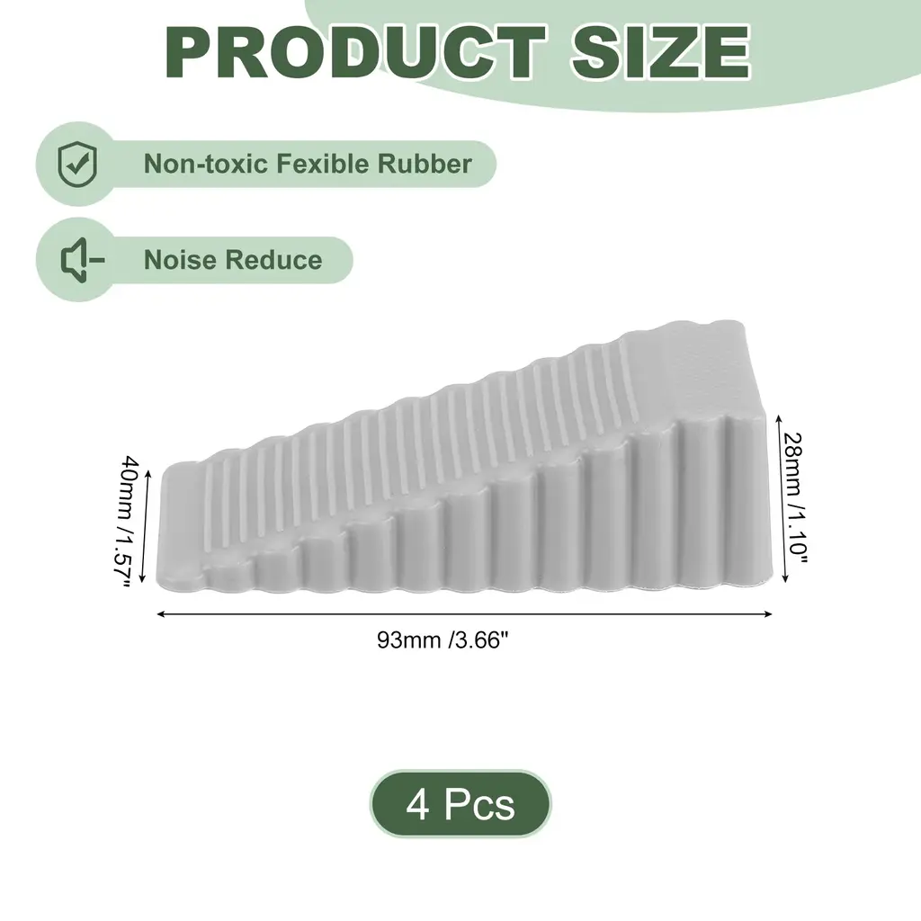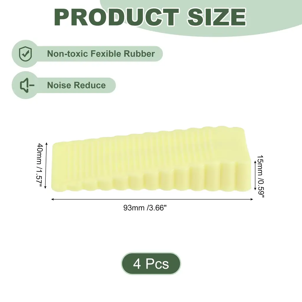 Description :Anti-Slip Design - The door stopper has a double-sided anti-slip function, with a horizontal stripe design on the surface, which increases the friction with the door and can easily fix the position of the door. The bottom hollowed-out anti-slip design keeps the door stable on the floor, with even force distribution during use, and is not easy to move.Material - The door stoppers for the bottom of the door are made of ABS, soft and non-slip, they will not scratch the surface of the floor or door; It has elasticity and can adapt to larger gaps, and can also be used on floors of various materials (wooden boards, ceramic tiles, and so on), and the trapezoidal design also provides cushioning force when closing the door.Easy Using - Place the door stopper on the floor at a suitable distance, which is easy to replace and does not affect cleaning. In addition to being used as a buffer and fixing when opening the door, it can also be used when closing the door to stop it from opening from the outside.Wide Applications - These door stops can be applied to various occasions, such as offices, homes, shops, hotels, etc; These door stops ensure that doors do not accidentally slip and close, so you don't have to worry about the door suddenly closing in winds, protecting the door and walls.Specifications:Material: ABSColor: GreenTotal Size: 93 mm x 40 mm x 15 mm / 3.66 Inch x 1.57 Inch x 0.59 Inch (L*W*H)Fit for distances with door gaps: Less than 15 mm / 0.59 InchPackage Content:4 Pcs x Door Stoppers