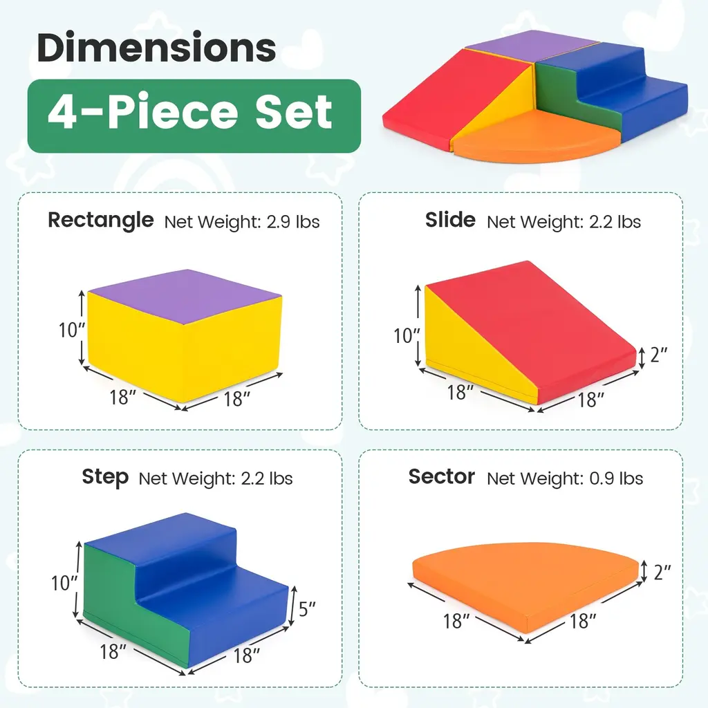 Specifications:Description:4-Piece Climb and Crawl Foam Block Play Set for Infants: Ignite your child's creativity with this versatile 4-piece foam block set, featuring a rectangle, slide, step, and sector. Perfect for indoor spaces like homes, amusement centers, kindergartens, and early learning environments, this set encourages climbing, crawling, and sliding fun. Made from high-density EPE foam, it provides a soft yet durable surface for safe play, ensuring long-lasting enjoyment. this foam block set gives parents peace of mind while fostering cognitive and physical development through play. The PU leather covers are soft, waterproof, and easy to clean, making maintenance effortless for busy parents.Key Features: