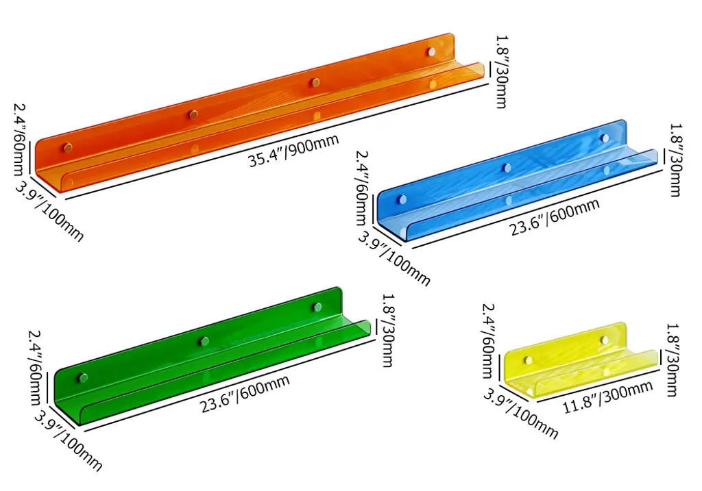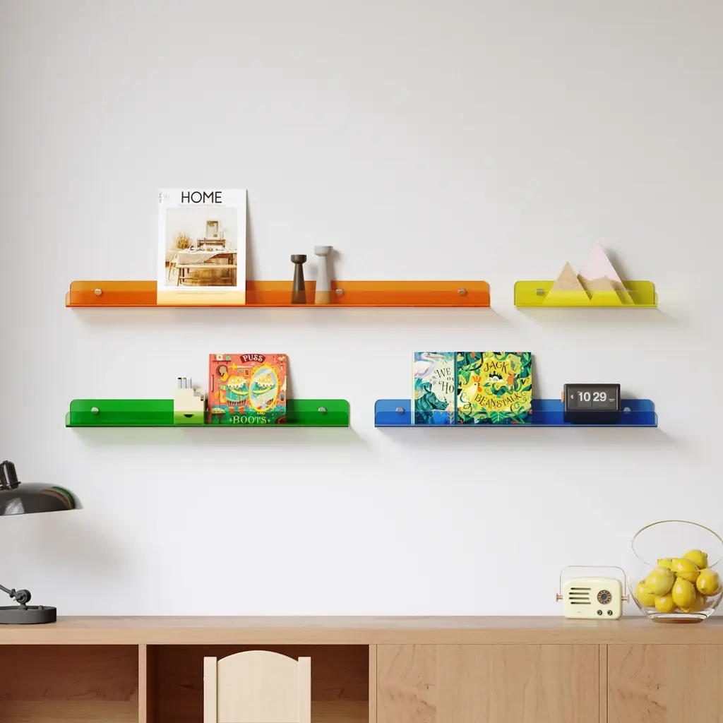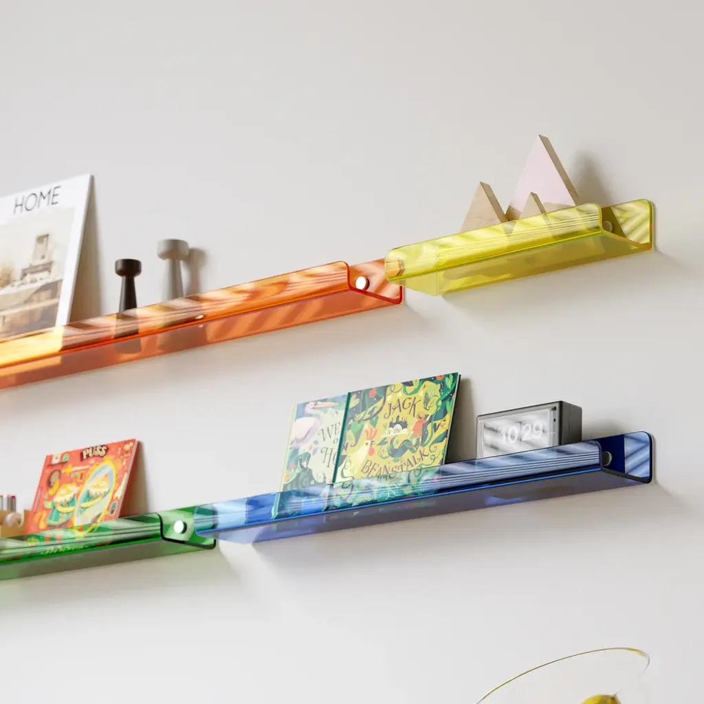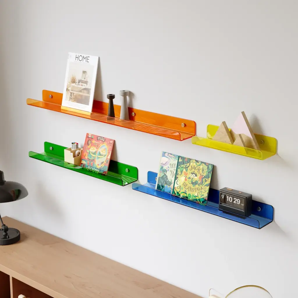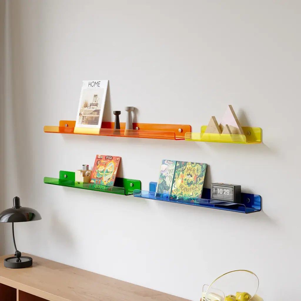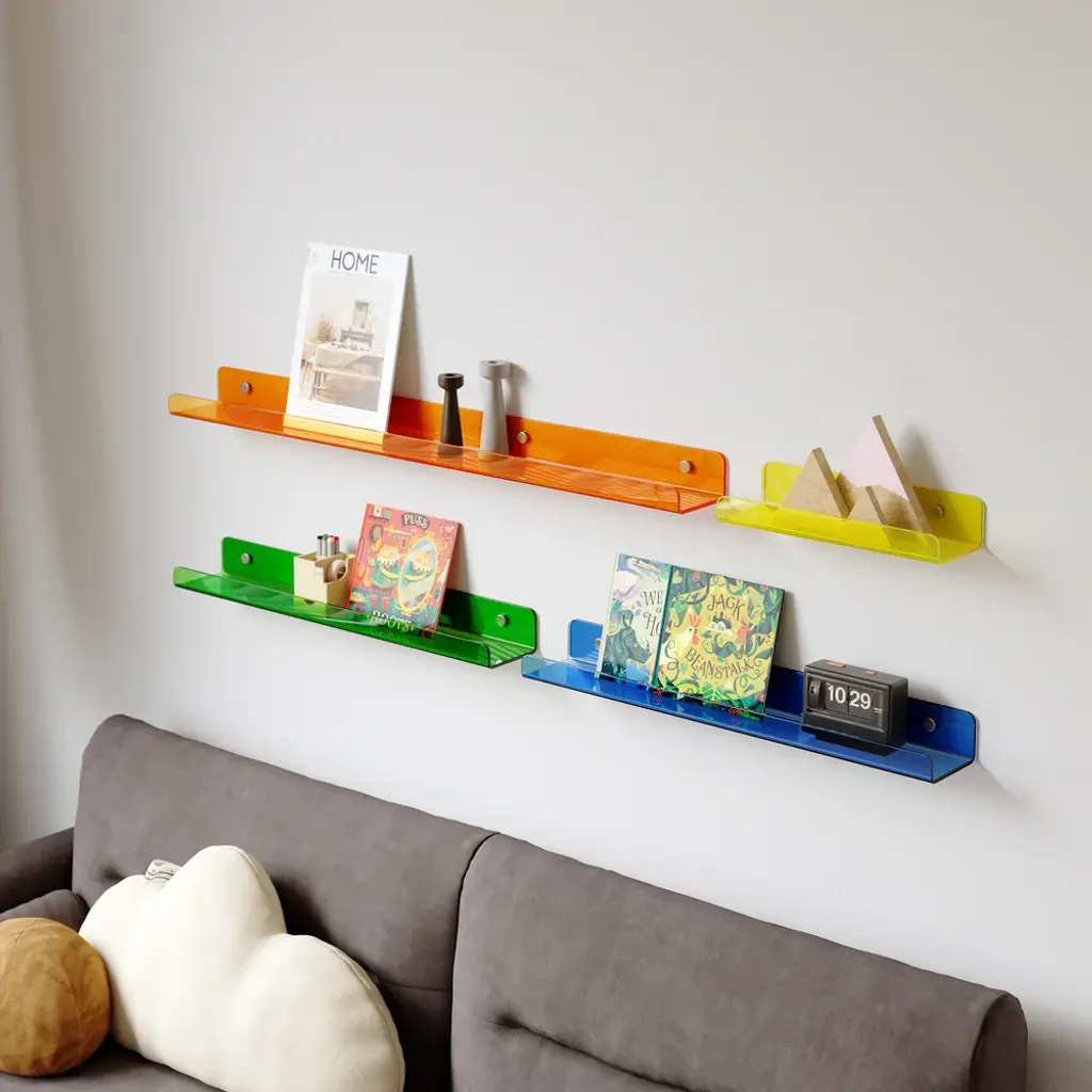 [Vivid Colors] This item is crafted from acrylic with colorful finishes. This set of floating shelves brings brilliant color to any room decor, creating an eye-catching focal point on your wall. [Space Saving] Wall-mounted shelves fit your space, especially perfect for smaller spaces, transforming even the tiniest corners into stylish display areas. [Versatile Applications] It complements any living room, bedroom, bathroom, or office decor effortlessly, serving as a practical and artistic addition to your space.
