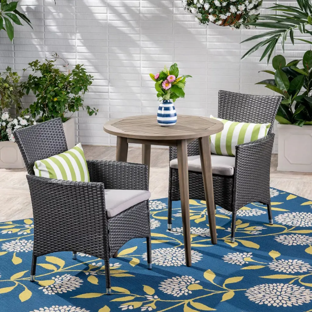 Create Your Ideal Outdoor Space with the Versatile PE Wicker Sofa Set Transform your outdoor area into a relaxing retreat with this versatile sofa set. Designed for comfort and style, this set offers flexible seating arrangements, durable materials, and eco-friendly features, making it the perfect choice for patios, gardens, and courtyards. With a small table for drinks and decorations, you can easily host gatherings or simply unwind in your personal outdoor oasis. Product Features: Freedom to Combine, Enjoy the Outdoors: This set includes double and single seats that can be arranged to suit your space and needs. The convenient small table can hold drinks, books, and decorations, making it perfect for outdoor relaxation or gatherings. The flexibility of this set allows you to create your ideal leisure space.Durable PE Wicker: The backrest and armrests are woven from high-quality PE wicker, designed to mimic natural rattan. The wicker is mold-proof, water-resistant, UV-resistant, and wear-resistant, ensuring long-lasting beauty and comfort in any weather.Eco-Friendly Material: The tabletop is made from wood-plastic composite board, offering a combination of the natural beauty of wood and the practical durability of plastic. This eco-friendly material is waterproof, moisture-proof, and recyclable, making it a sustainable alternative to traditional materials.Sturdy Iron Frame: The frame is crafted from high-quality iron, reinforced with anti-rust technology. This ensures that the set remains strong and resilient against the elements, withstanding wind and rain while maintaining its quality over time.Versatile for Multiple Scenes: Available in beige, grey, and dark blue, this set seamlessly fits into a variety of outdoor settings like courtyards, terraces, and villa gardens. Pair it with greenery or string lights for a chic outdoor retreat that¡¯s perfect for all seasons.Easy Assembly: This set can be easily assembled with the provided hardware and straightforward instructions, allowing you to set up your outdoor haven in no time. Product Specifications: Table Size: 35.4'' x 22'' x 17.3''Double Seat Sofa Size: 45.3'' x 27.4'' x 33''Single Chair Size: 23.7'' x 27.4'' x 33''Cushion Height: 5.51''Double Seat Net Weight: 47.3 lbsSingle Chair Net Weight: 23.6 lbsTable Net Weight: 41.8 lbsOverall Weight: 136.4 lbs Materials: Table Material: PVC BoardFrame Material: IronCushion Material: Staple FiberCushion Filling Material: Sponge + Soft SpongeBack Cushion Filling Material: PP cotton Weight Capacity: Table Top Weight Capacity: 100 lbsSofa Weight Capacity: 250 lbs Installation Precautions: Tip 1: Lay cardboard on the ground before installation to avoid staining or scratching the product.Tip 2: Avoid friction between parts during installation to prevent scratches.Tip 3: Do not tighten screws completely at the beginning. Wait until all screws are in place before tightening. Notice: About Color: The color of the products may differ slightly from the images due to screen display or lighting. Please refer to the actual product for color accuracy.About Size: Sizes are manually measured, so there may be slight differences.