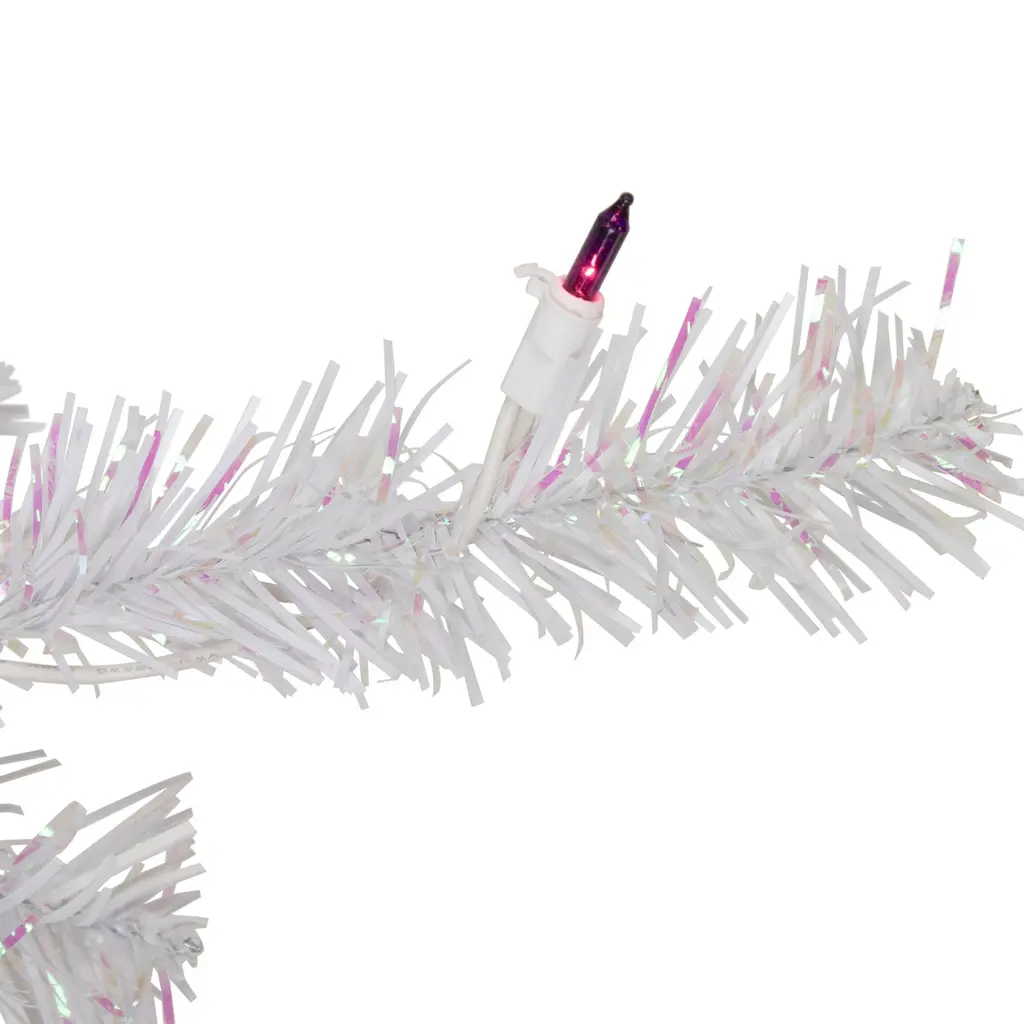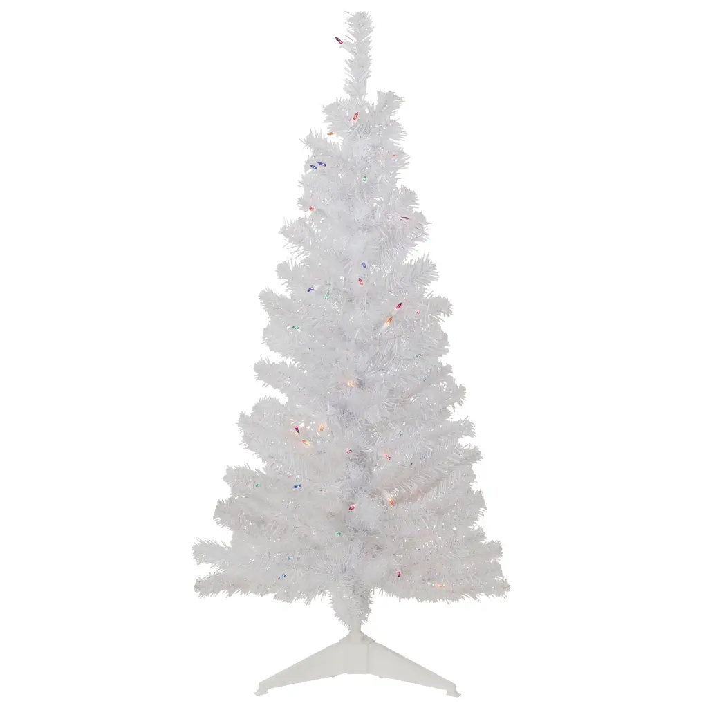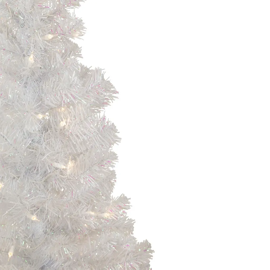 With its immaculate color and generous profile the Rockport White Pine Christmas tree glistens with wintry beauty. It is a designer-inspired alternative to a traditional green tree with its dazzling white pine needles. The branches contain a mix of matte white and clear iridescent needles that create texture and add depth to the tree. The iridescent needles beautifully reflect the soft glow from the blue incandescent mini lights. This tree is perfect for a quick and easy setup and ideal for corners or tabletops. Product Features: Pre-lit with 70 lights Bulb size: mini Bulb type: incandescent 110 tips Slim profile tree Additional Product Features: If one bulb burns out the rest will stay lit Light sets on tree are UL listed for indoor or outdoor use however the tree itself is recommended for indoor use only Lights are equipped with Lamp Lock feature which makes them replaceable interchangeable and keep them from falling out Contains 1 plug with end connector Connector allows to stack multiple lighted items together (not to exceed 210 watts) 3-piece easy assembly (including stand) Includes a white plastic tree stand Wire gauge: 22 120 volts 60 hertz .24amps 28.8 watts Dimensions: 4' high (from the base of the stand to the top of the tree) 24" base diameter (at the widest point) Material(s): PVC/plastic/glass bulbs/wire Note: Branches are compressed for shipment and need to be fluffed out upon arrival to look like the photo.