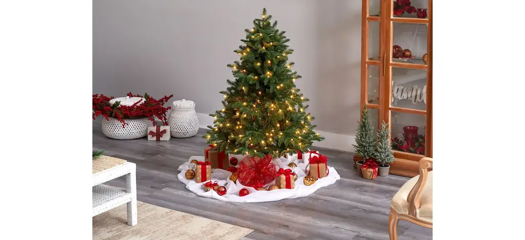 Evoke a traditional Christmas scene with the 4' Pre-Lit South Carolina Spruce Artificial Tree . Incredibly lifelike with a full-figured silhouette - that mimics the texture and foliage of real evergreens.