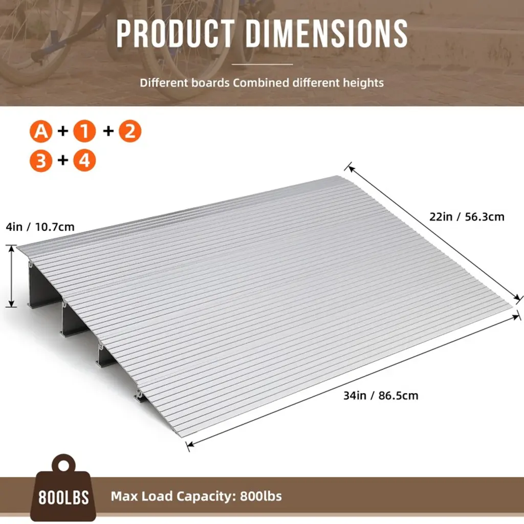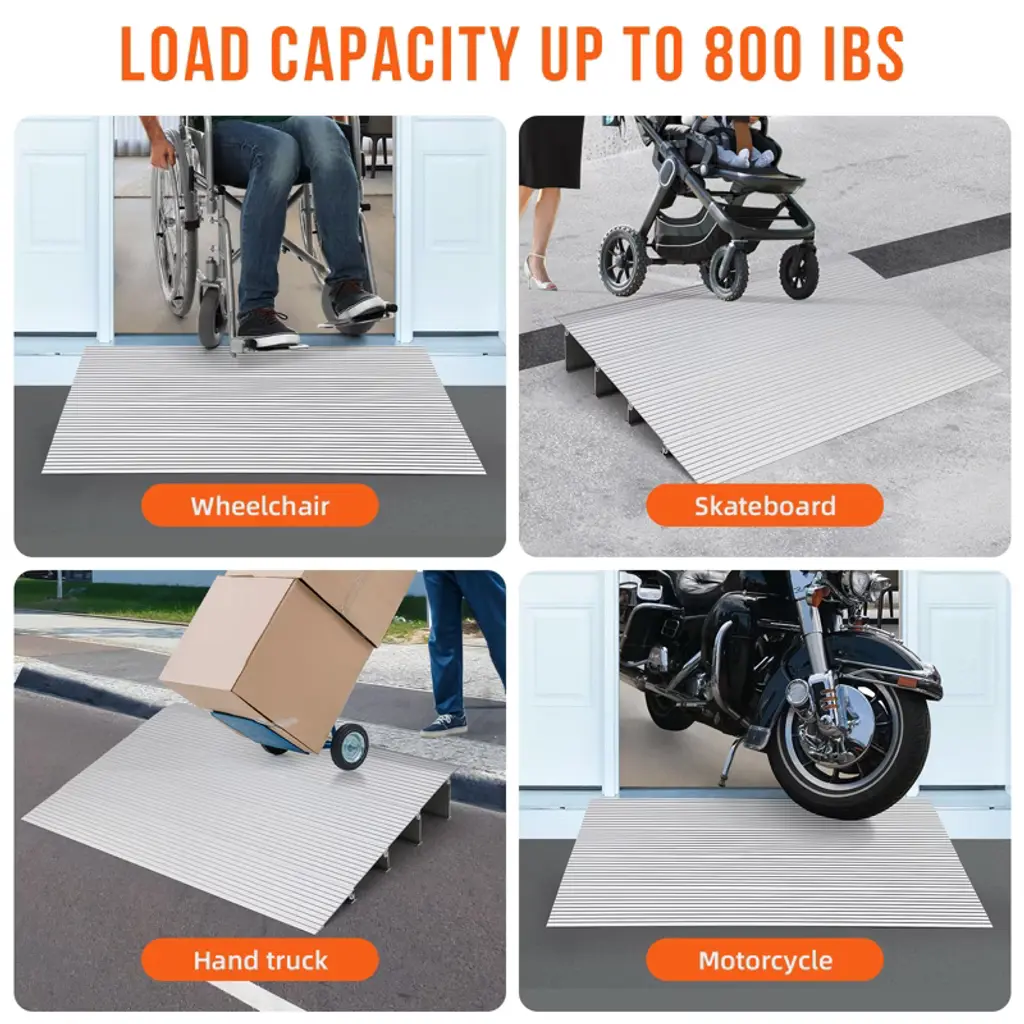 4" Rise Door Threshold Ramp, Aluminum Self Supporting Ramp, 800lbs Load Capacity, Non-slip Surface, Adjustable Telescoping Design