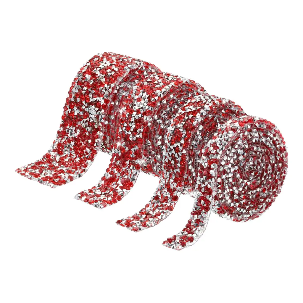 4 Roll 4 Yards Self Adhesive Crystal Diamond Ribbon Silver Base - Red