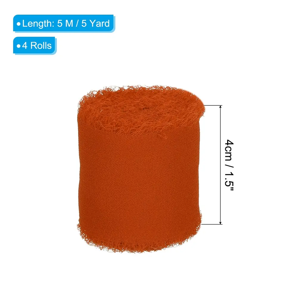 4 Rolls 1.5 Inch X 5 Yard Handmade Fringe Silk Chiffon Ribbon - Burgundy