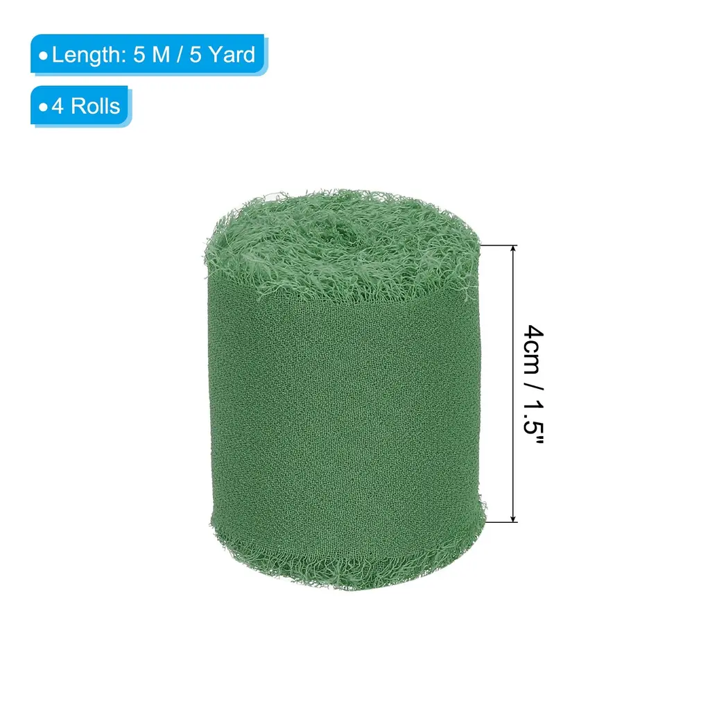 4 Rolls 1.5 Inch X 5 Yard Handmade Fringe Silk Chiffon Ribbon - Grass Green